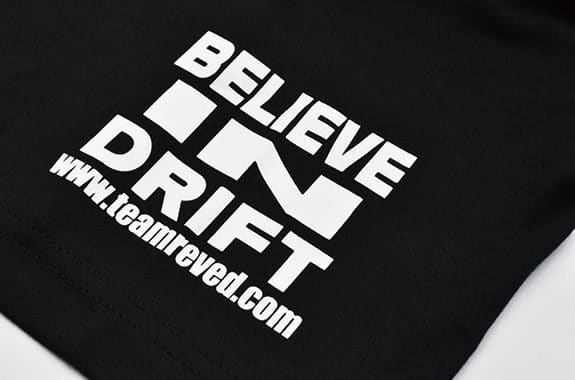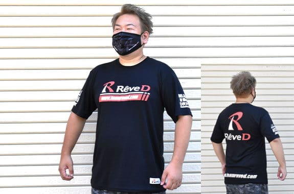 The fearless black-based Reve D T-shirt has the Reve D logo on the front and back of the garment. A white logo is printed on both sleeves, making it a striking design on the circuit and street.