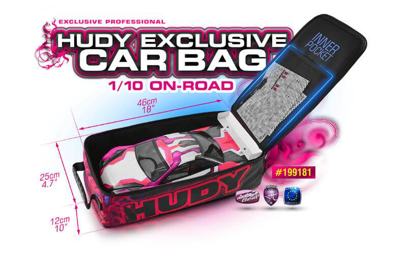 Stylish HUDY Exclusive Car Bag. With your R/C car being one of the single most important pieces of your racing equipment, it deserves all the protection it can get when traveling to & from races.