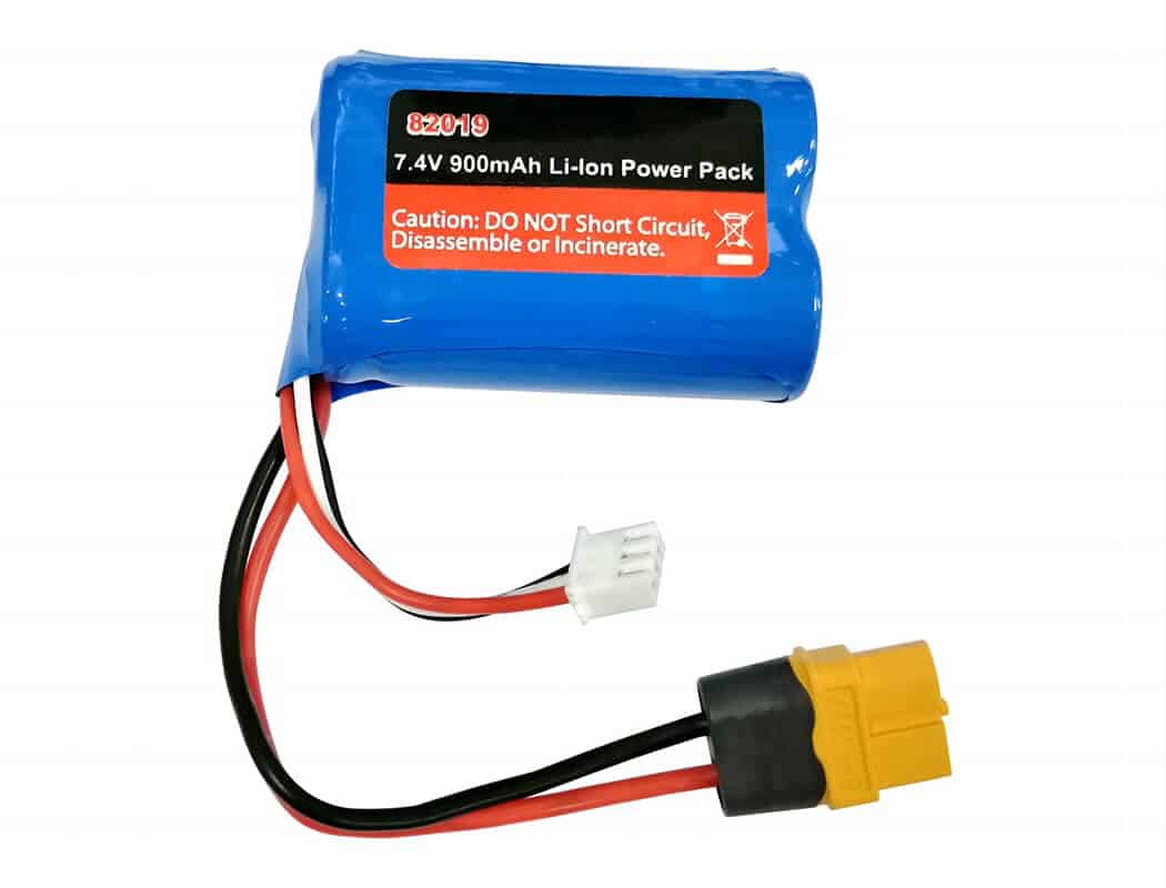 - 7.4V 900mAh Li-ion battery pack.