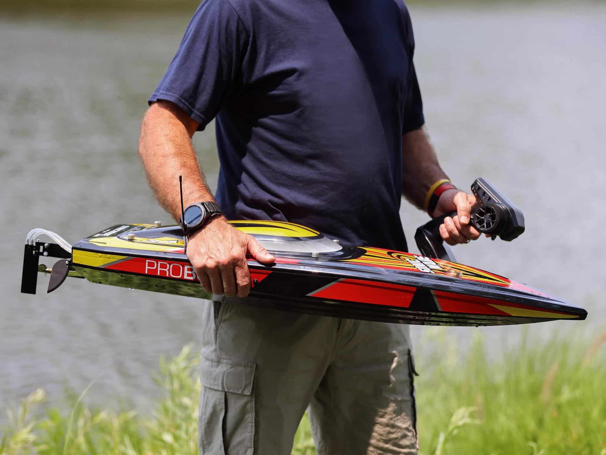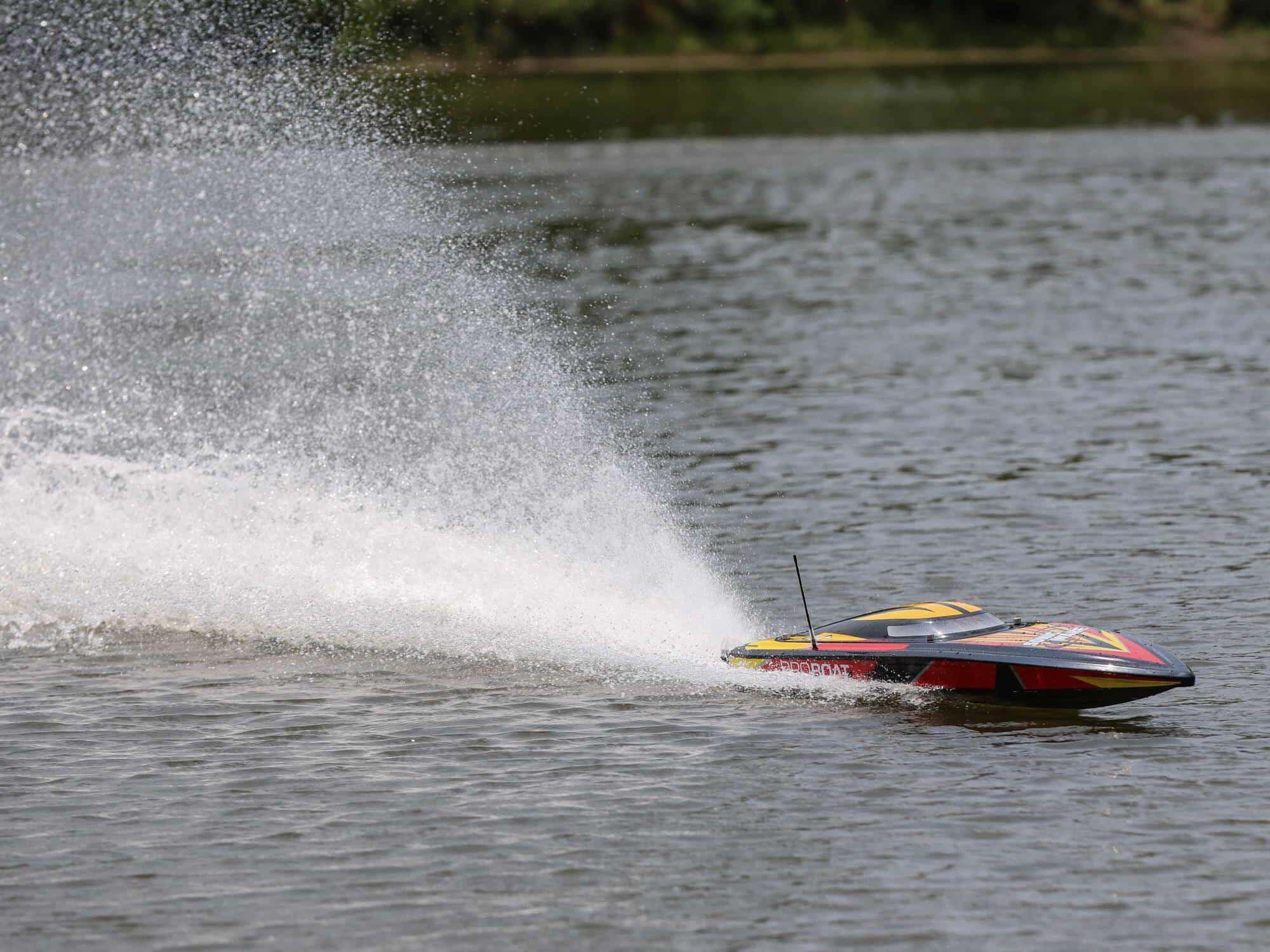 The Sonicwake 36-inch Self-Righting Deep-V features a ballistic 40x68mm 4-pole Spektrum Firma 1900Kv water-cooled brushless motor capable of propelling the boat to speeds in excess of 50+ MPH.