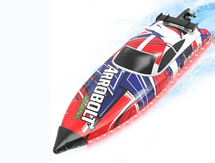 - High Speed RC Boat With Brushless Motor: The water-cooled brushless motor provides more power to the remote controlled boat Arrobolt Lumen S to make waves at 35+MPH and blow other radio controlled boats out of the water! Innovative hull design with low resistance, stable racing and fast speed.