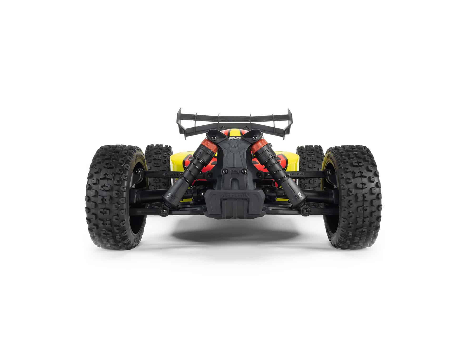 The TYPHON MEGA 665 4×4 racing buggy body is securely held in place by a hidden clipless body retention system. The body comes in a choice of bold, factory-finished colour schemes and includes a high downforce wing.
