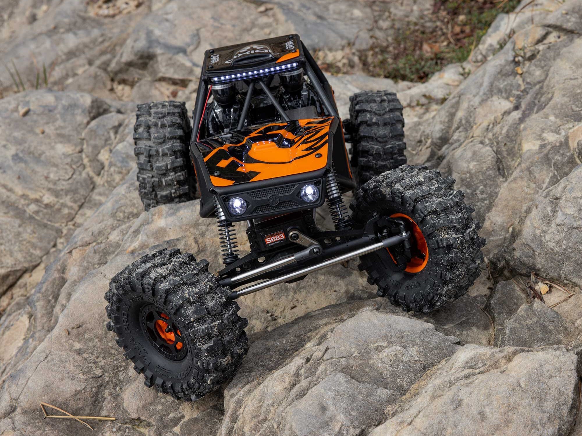 Each end of the Capra is equipped with a waterproof, 25T Spektrum S683 metal-gear servo to steer the front and rear axles.