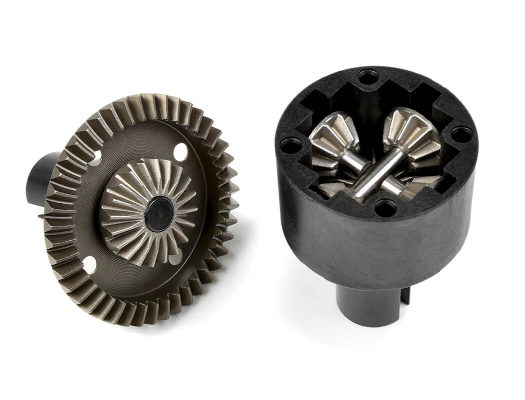 • Three fluid-filled precision differentials with CNC spiral-cut metal input and main gears.