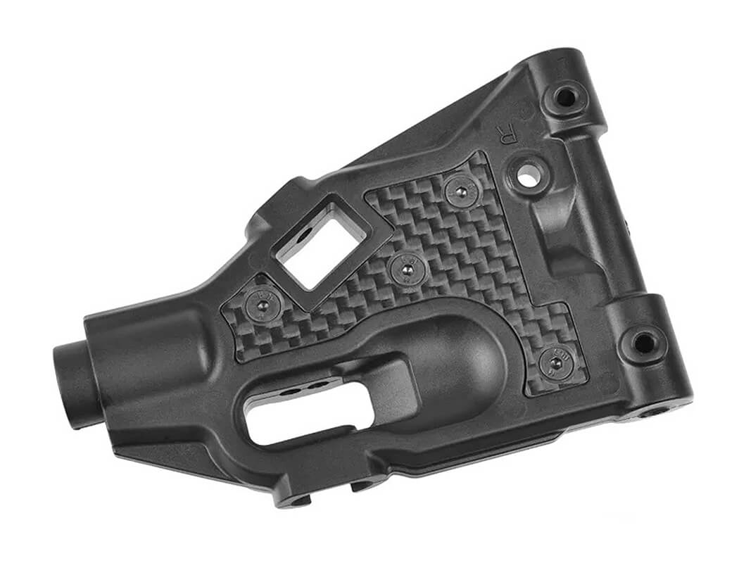 Graphite Shock Towers: Aerospace-grade carbon fiber provides exceptional rigidity and optimized mounting points for shock absorbers and camber links.
