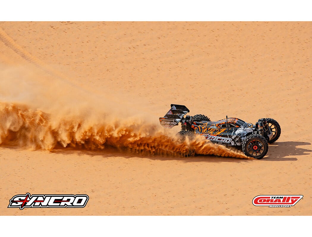 Are you ready to dive into the world of RC racing? The Team Corally Syncro is ready to make your first steps unforgettable! Designed for both newcomers and enthusiasts, this 4S powered, 1:8 scale 2WD buggy combines professional-grade engineering with user-friendly features to deliver an experience that’s as fun as it is rewarding.