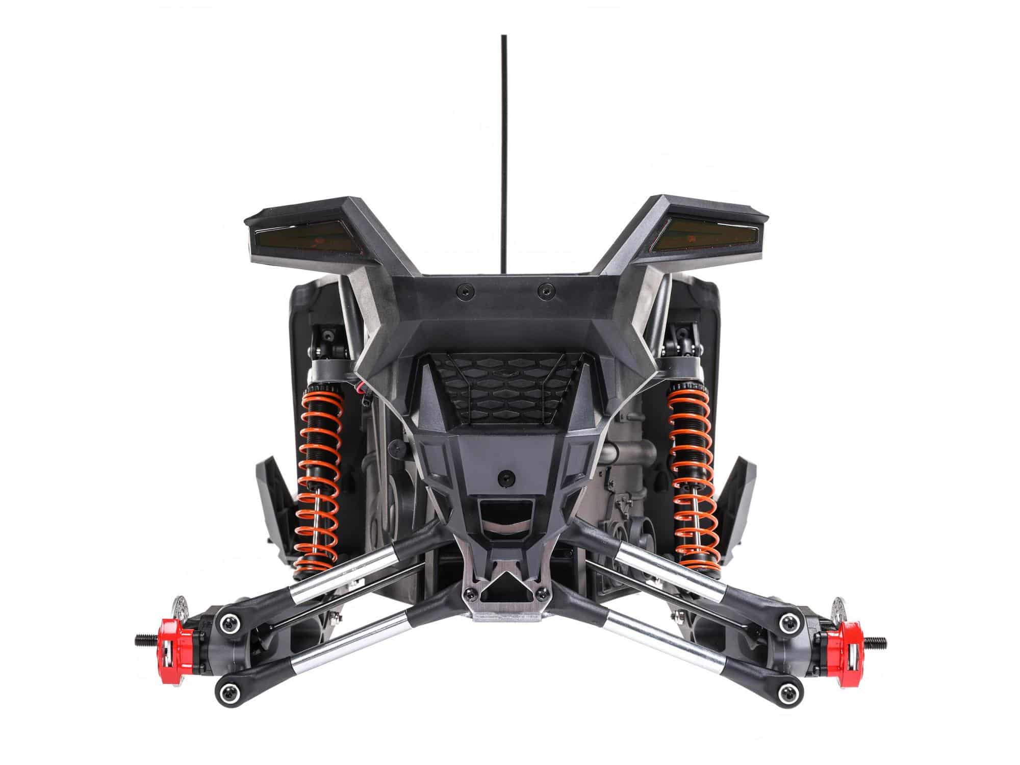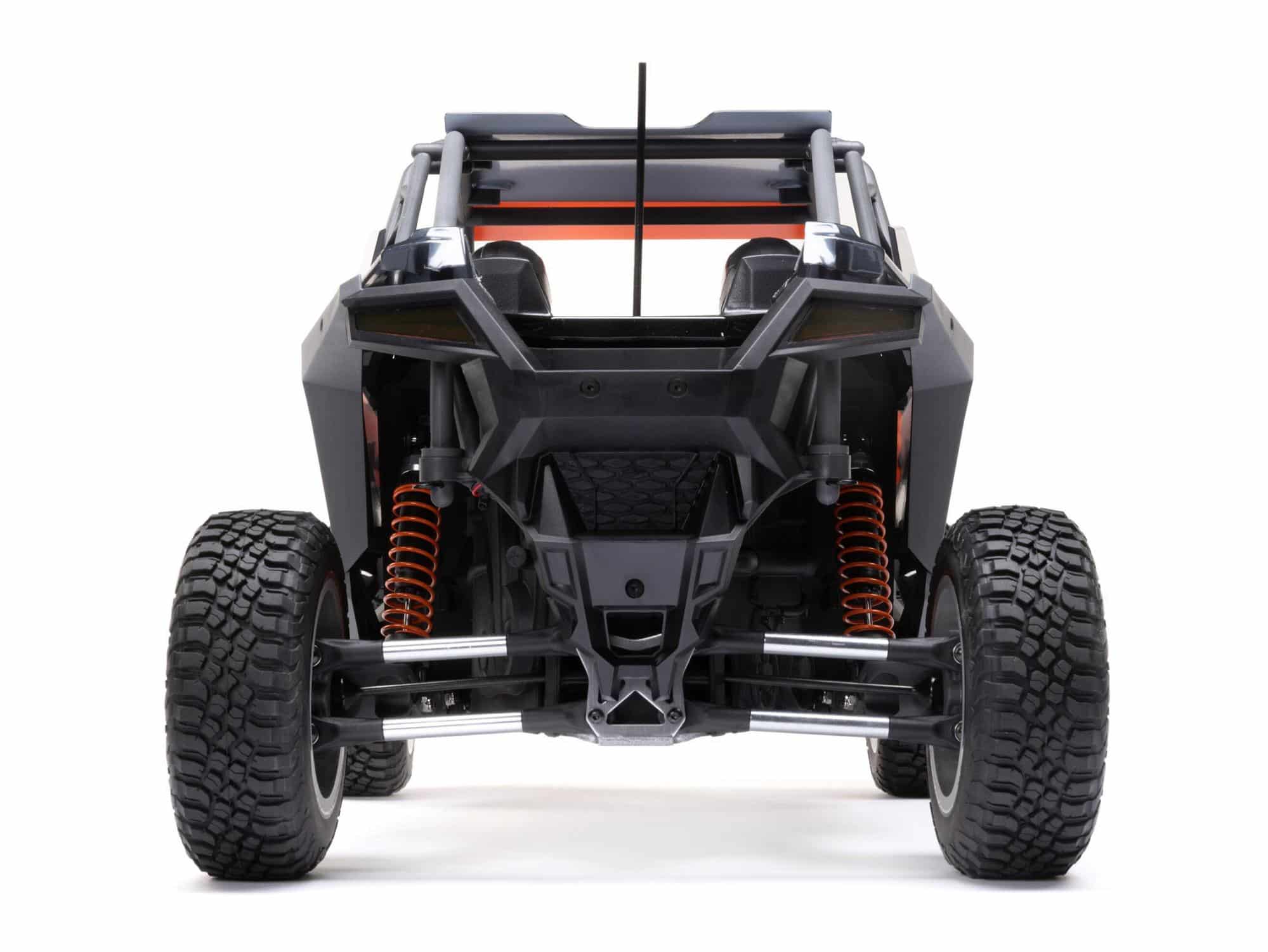 Officially licensed by Polaris and scaled after its top-of-the-line SxS, the ready-to-run Losi Polaris RZR Pro R is built on the RZR Rey chassis — an evolution of the highly successful Losi Baja Rey chassis. Until now, the Rey was available only with a front independent and rear solid axle suspension. For the RZR Rey, the rear suspension has been redesigned true to scale with a new independent rear trailing arm setup. The Polaris RZR Pro R looks and handles like the real thing, with superior handling over rough terrain.