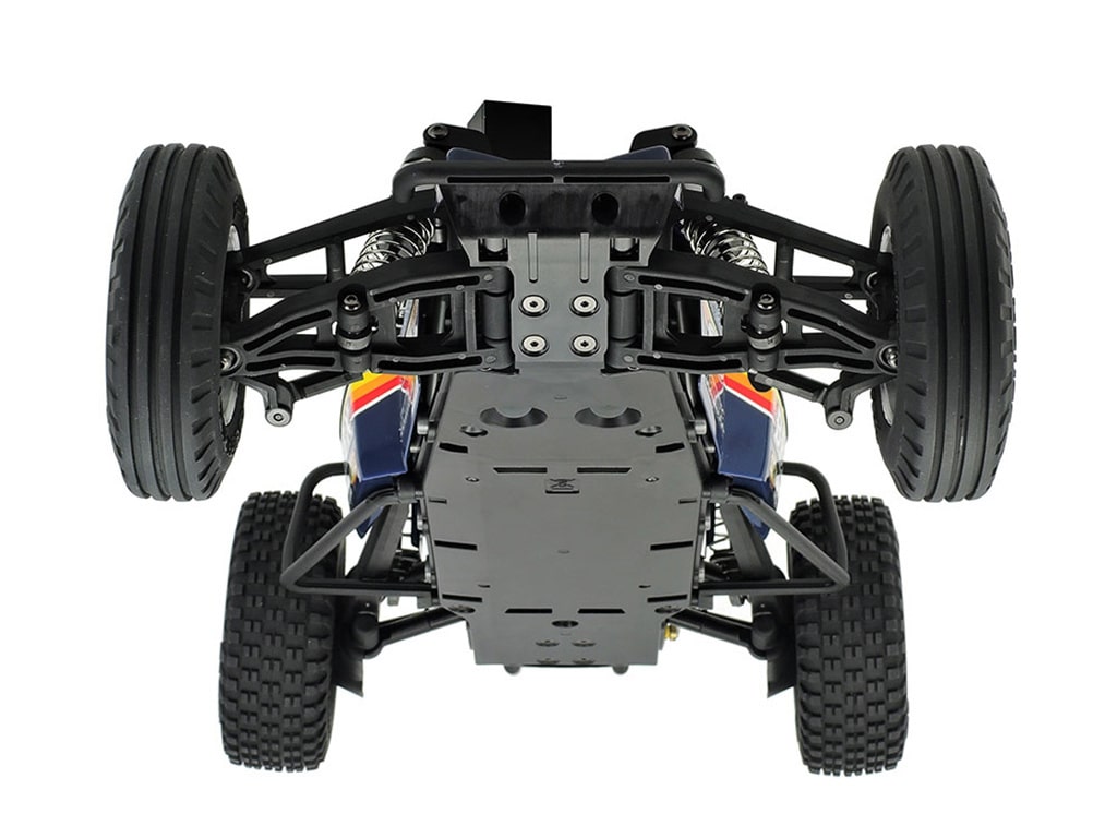 Tamiya’s designers have taken inspiration from its back catalogue of iconic 2WD off-road buggies to bring fans of radio control the ALL-NEW BBX! This 1/10 R/C 2WD off-road buggy model features a combination of classic design and modern performance. Its brand-new chassis, reminiscent of 1980s sand rail dune buggies, is a hybrid monocoque-roll cage and employs rear trailing arm suspension inspired by full-size UTV’s. The new body is designed by famed Japanese artist Atsushi Arino and utilizes a classic 1980s inspired livery with retro wheels and tires to match!