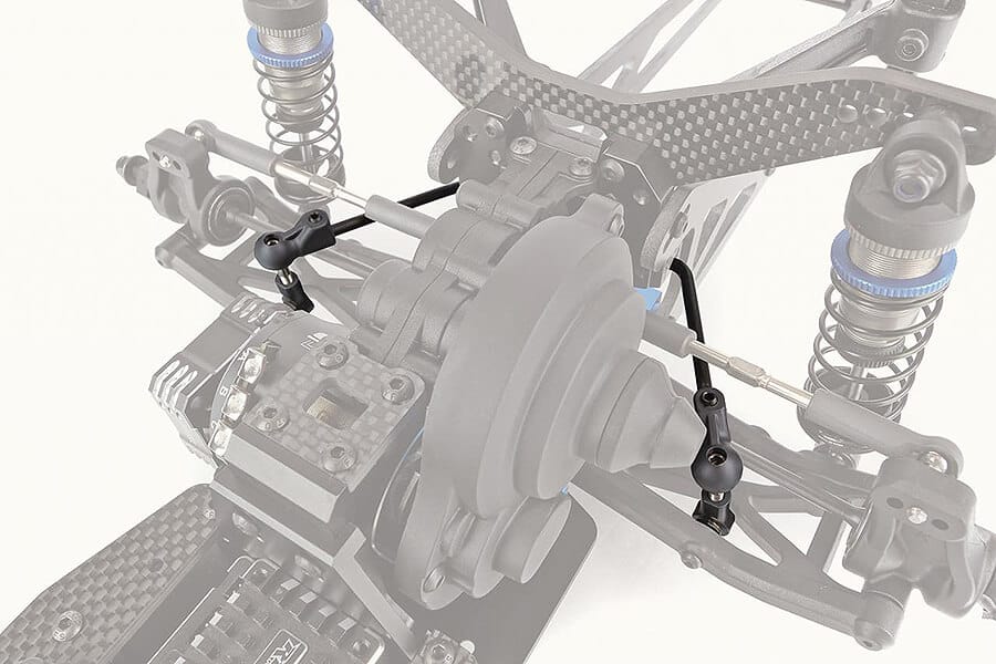 - Rigid, 4mm thick carbon fiber rear shock tower