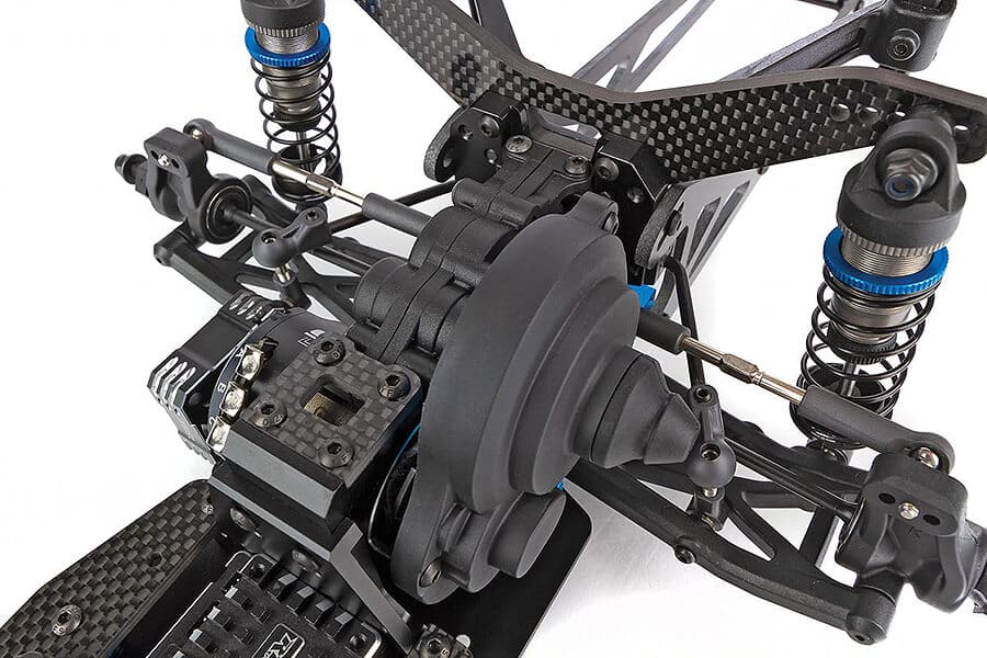 The mid-motor set up up shifts the weight distribution forward, reducing front-end lift. Additionally, the motor and tires share the same rotational direction, which produces quicker forward momentum to help you get a faster time across that finish line.