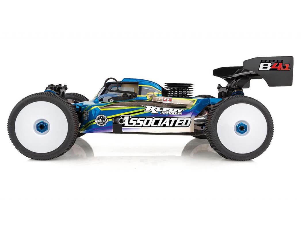 - New RC8B4.1 RWB chassis and side guards with tapered chassis design to increase stiffness and predictability