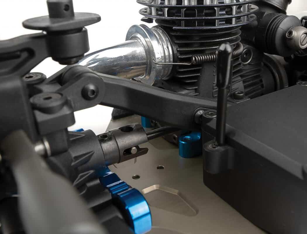 - RC8B4 aluminum steering rack designed around the updated front end geometry is lightweight and durable