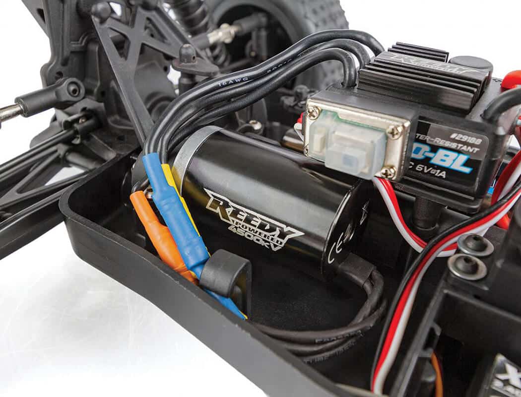 - Water-resistant, high-power Reedy brushless speed control with T-plug connector