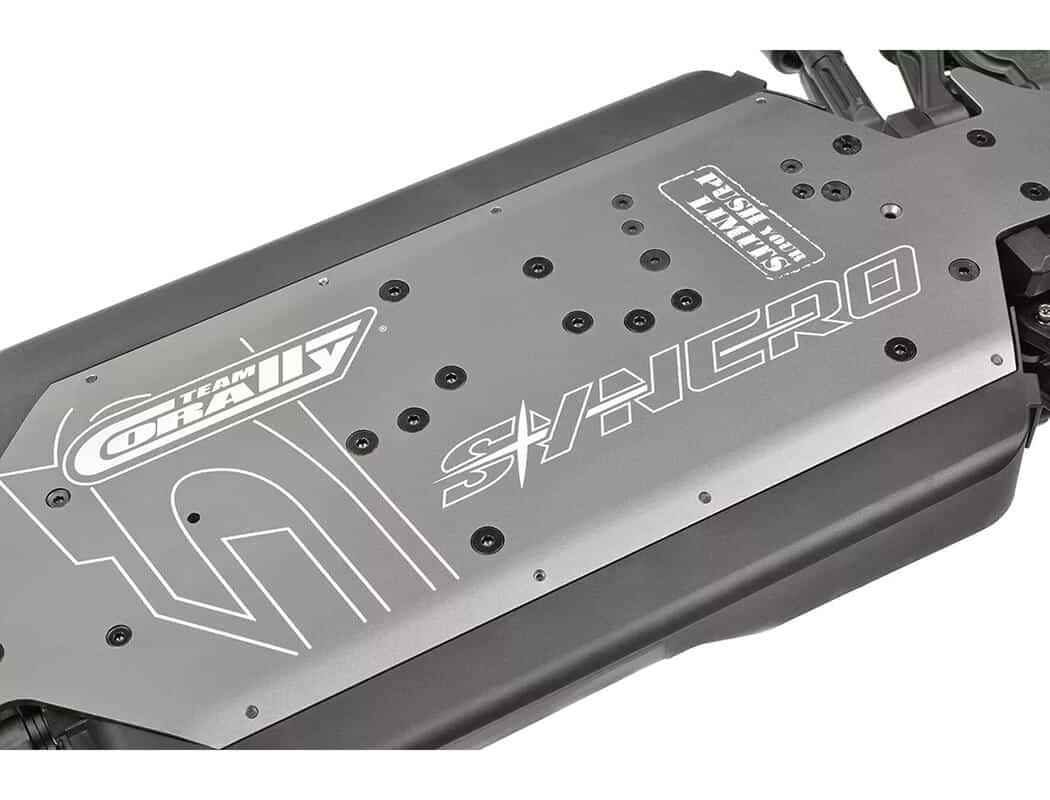 In crafting the Syncro4, Team Corally seamlessly blends proven components with innovative solutions, offering a harmonious mix of reliability and fresh design. Many elements, like the robust arms, steering blocks, and rear hubs, draw inspiration from our proven 6S lineup, ensuring a solid foundation. At the same time, newly redesigned shocks, towers, and other key features introduce a breath of fresh air. Notably, enthusiasts can easily update various components from the 6S lineup, adding a layer of versatility and personalisation to the Syncro4 driving experience. In our commitment to innovation, we extend our focus beyond mechanics to aesthetics, incorporating striking features like anodised in a titanium shade, laser-etched chassis, ensuring your Syncro4 not only performs outstandingly but also stands out in style.