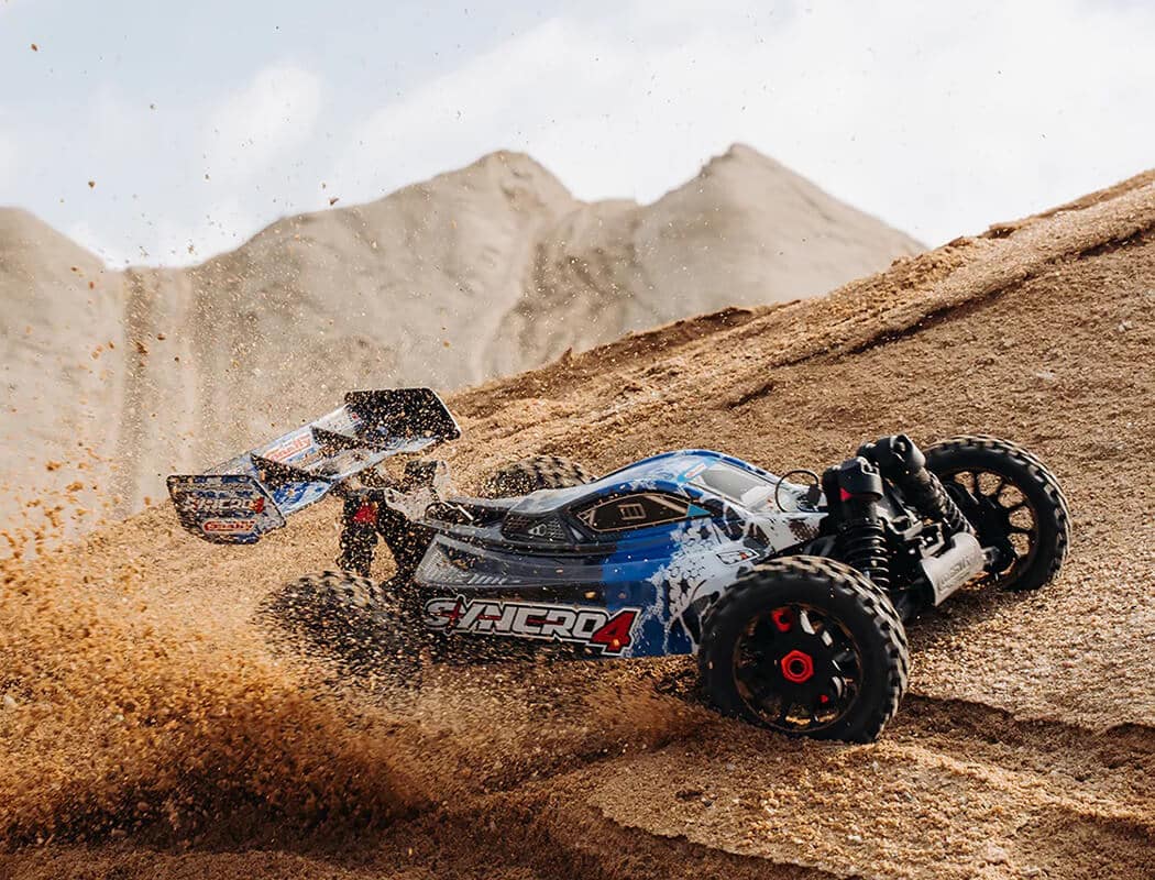 Experience the thrill of off-road RC racing with the Team Corally Syncro-4 Brushless 4S Basher Buggy. Unleash the power and enjoy exceptional handling!