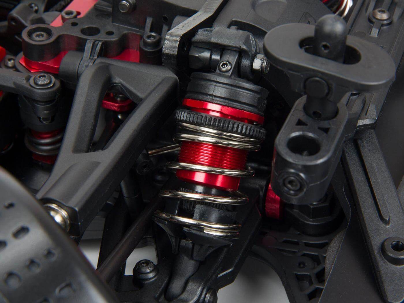 - Black-anodised aluminium front and rear shock towers
