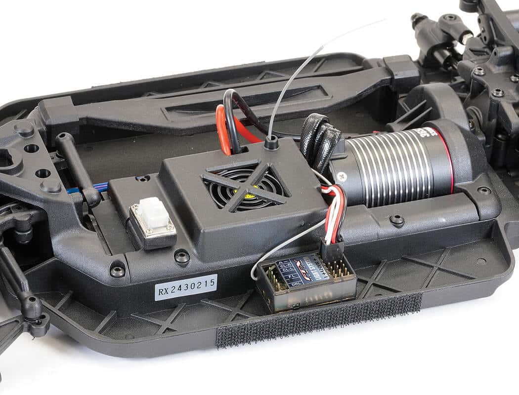- Moulded wide main chassis featuring screwless base
