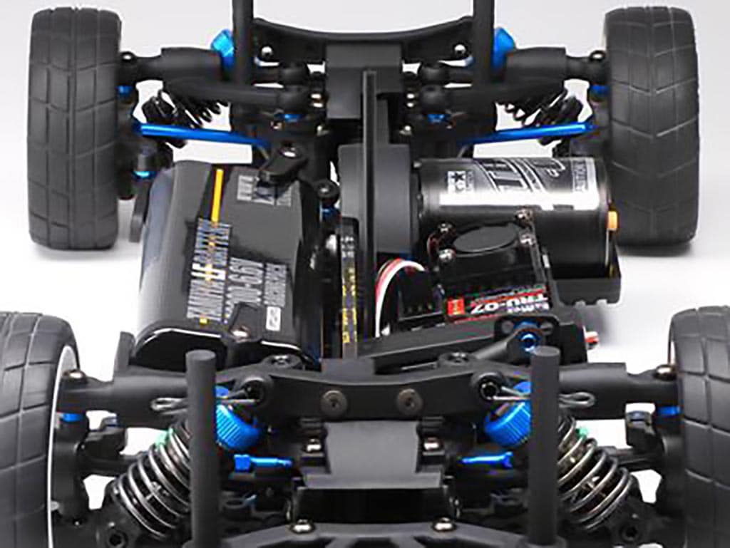 • A-arm suspension arm gives your model a low center of gravity, enhanced with laid down dampers.
