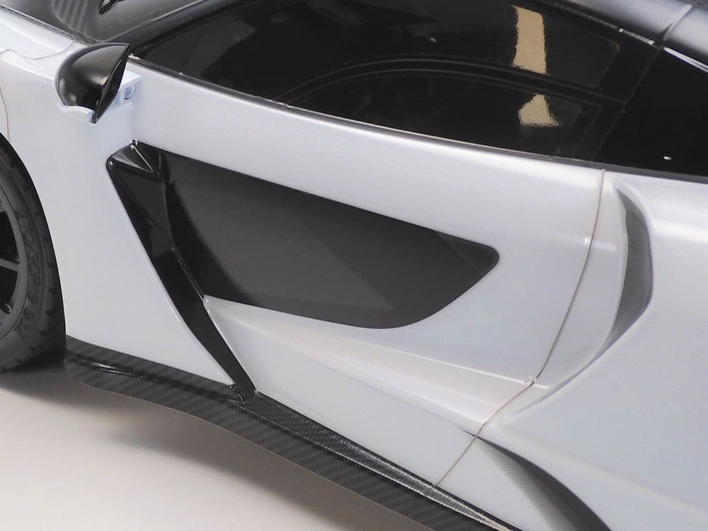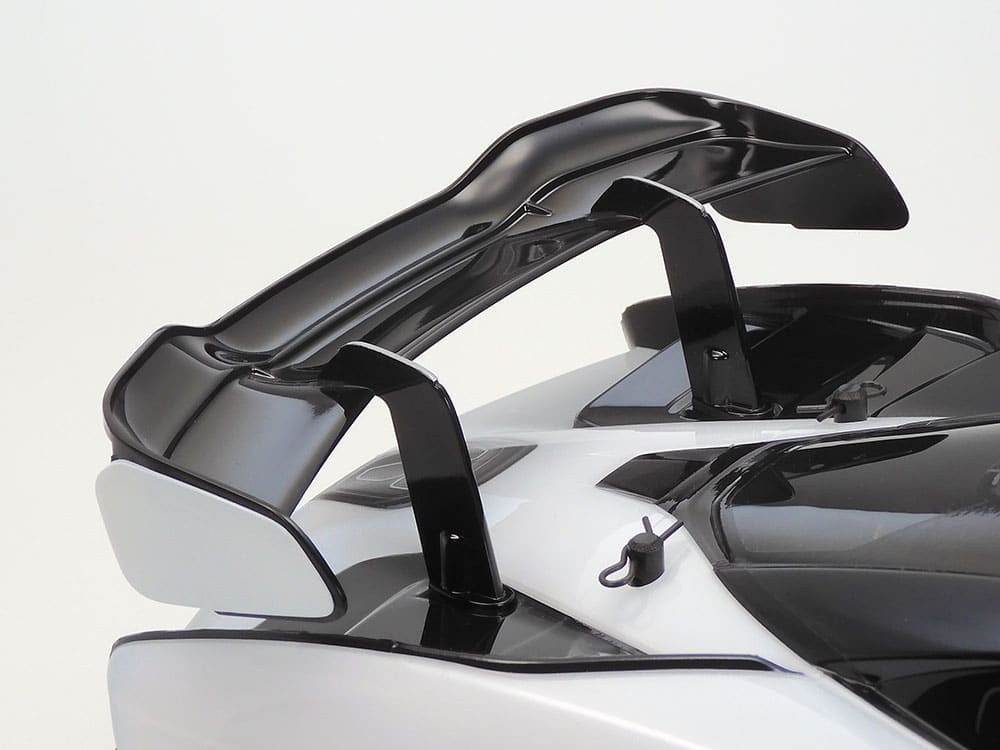 - The complex, aerodynamically honed form of the McLaren Senna is captured in polycarbonate with dedicated black ABS side mirrors and rear wing.