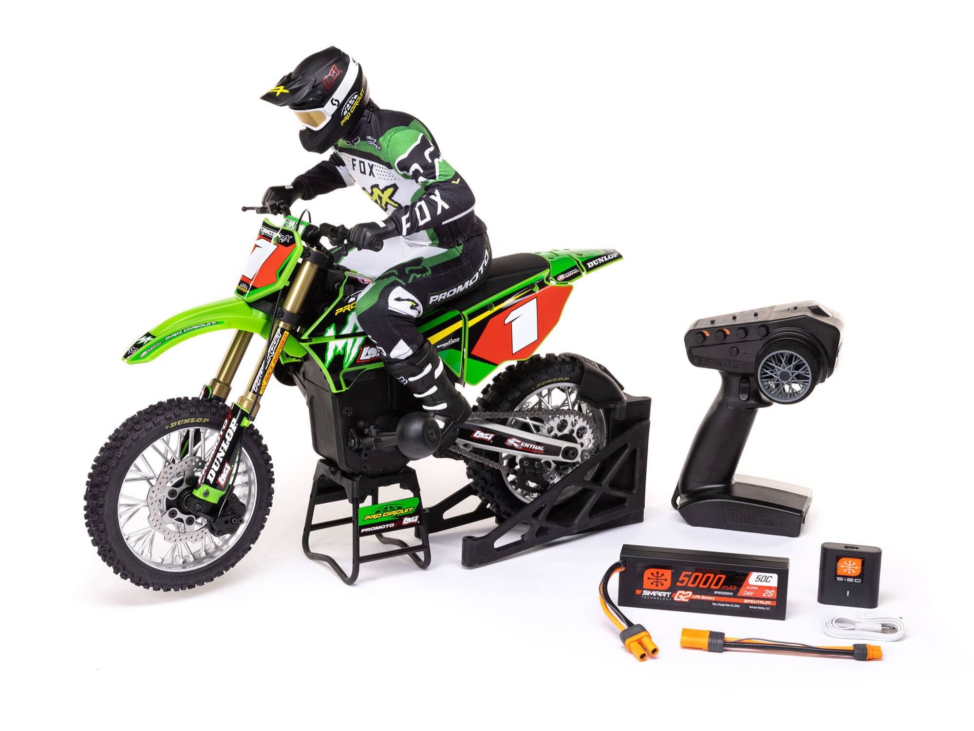 Losi 1/4th Promoto-MX Motorcycle RTR “Fox” with Battery and Charge, Pro Circuit LOS06002
