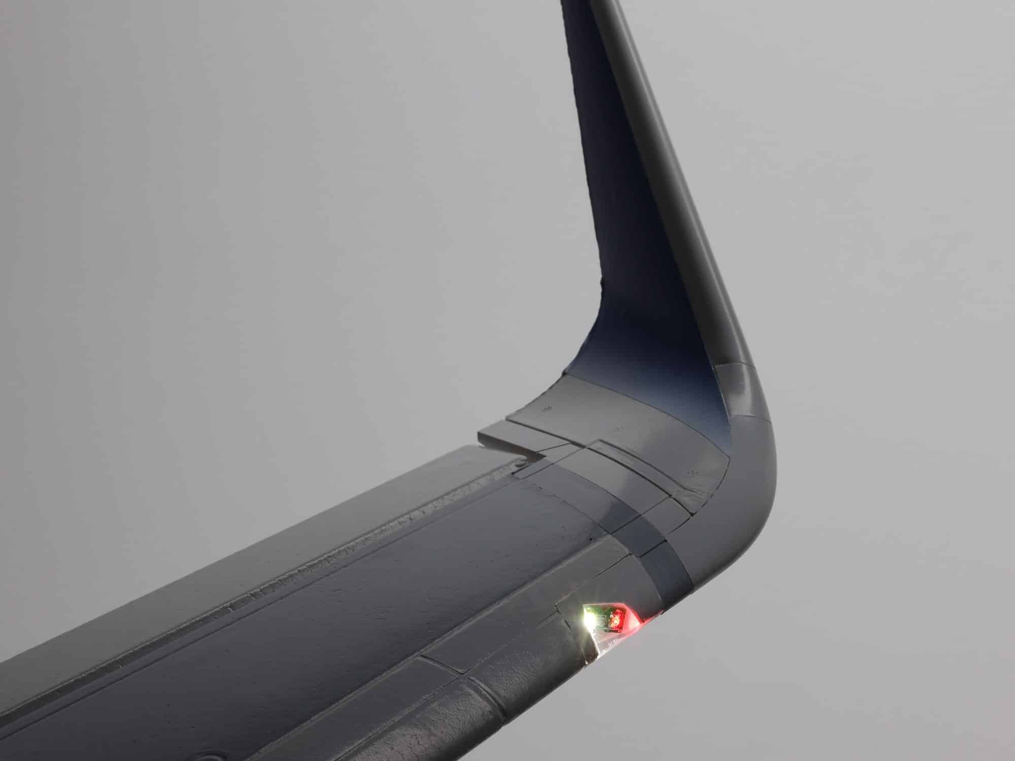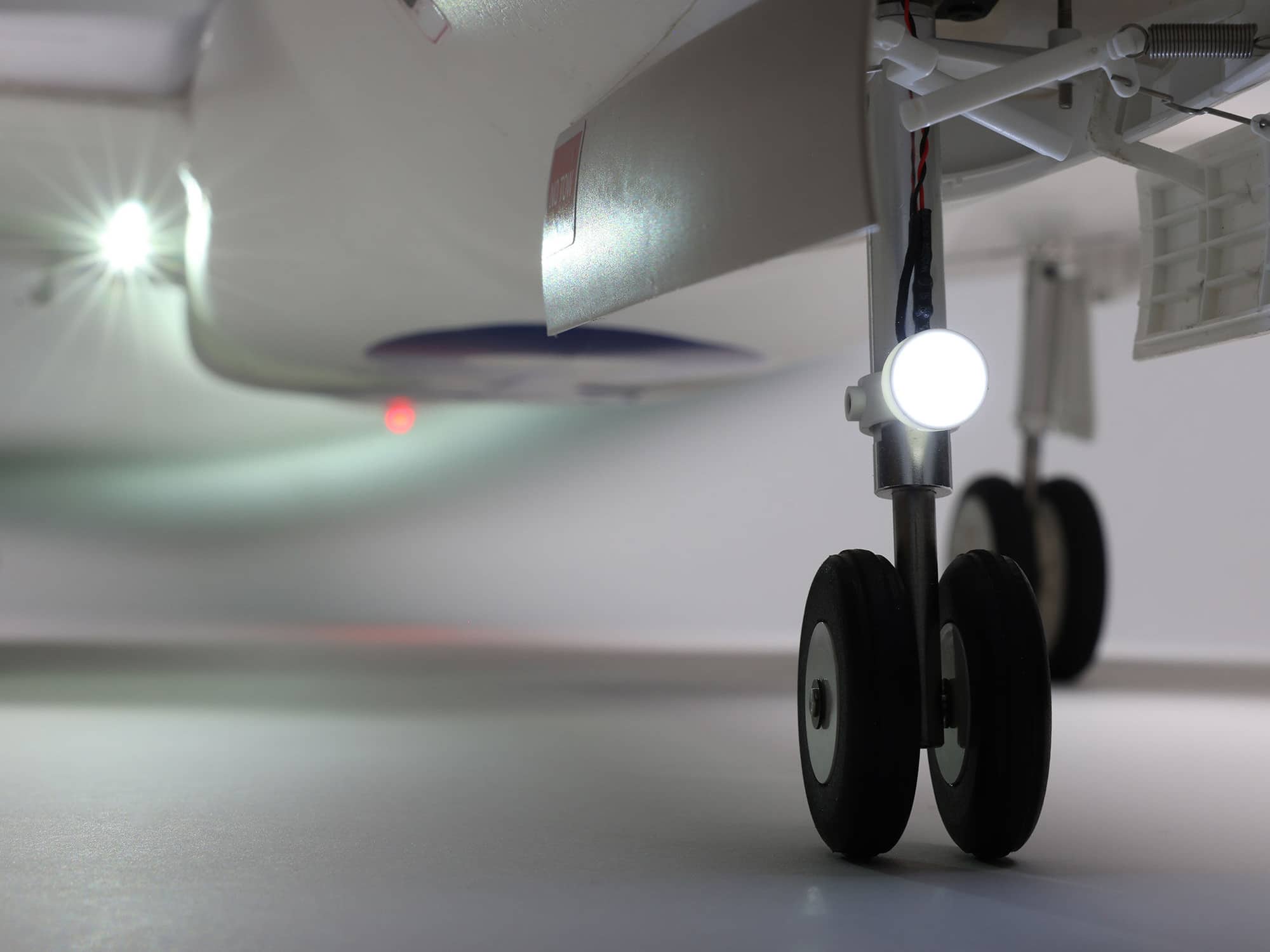 - Functional features including LED navigation, strobe and landing lights, operational flaps, retracts and nose gear doors