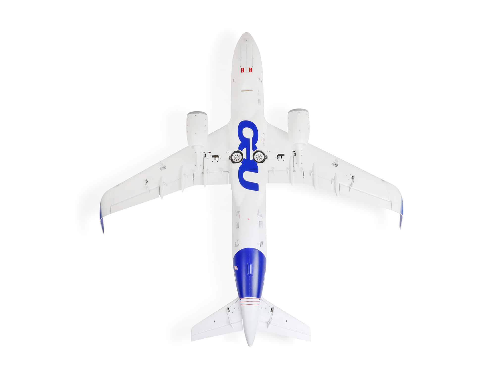 The A320neo Twin 64mm EDF is available factory-finished in Airbus’ special “neo” livery that’s fully painted with the decals already applied. Or, in a painted “base white” version that includes separate window and other decals so you can customize the scheme with any airline or other livery you like!