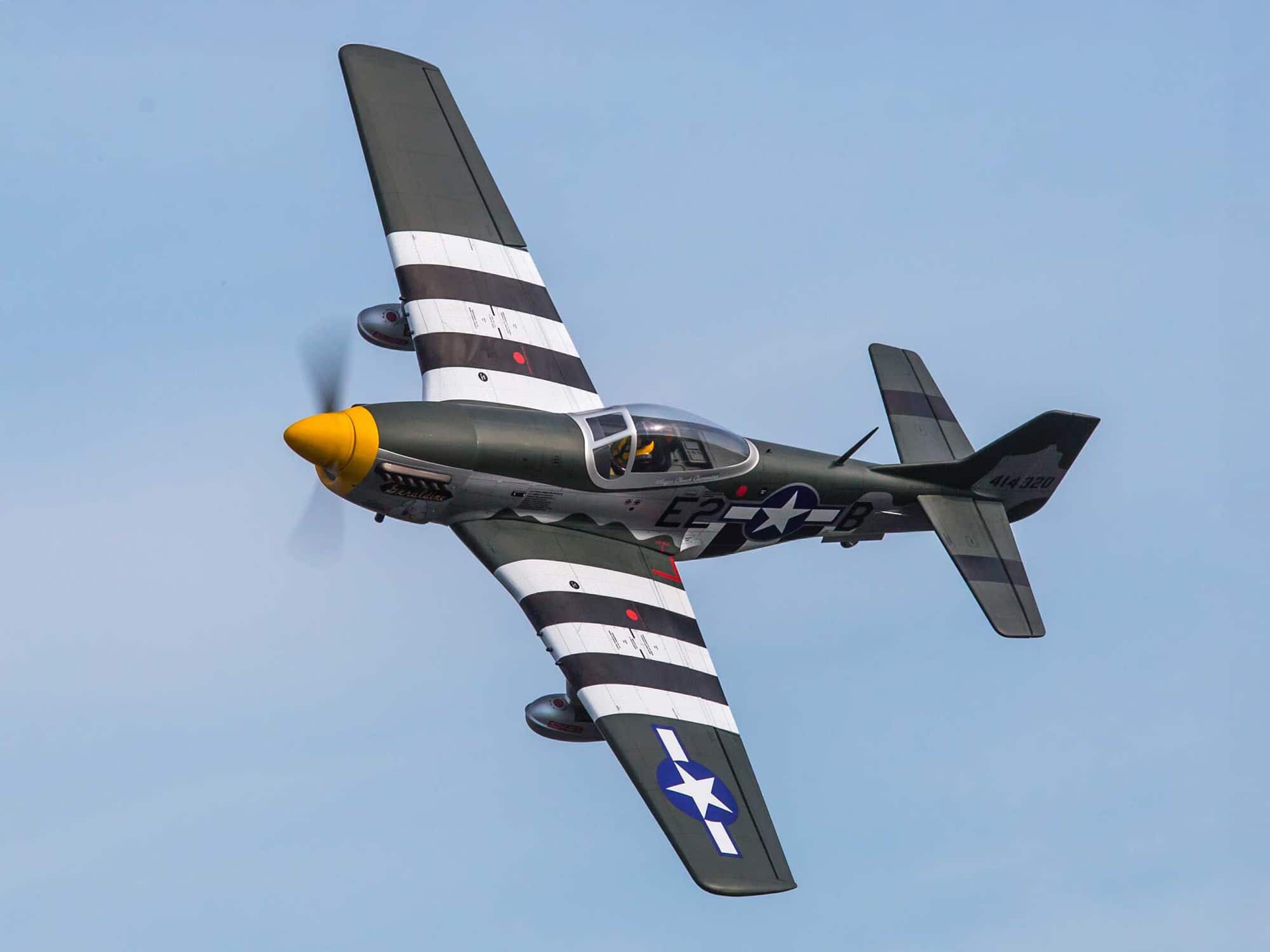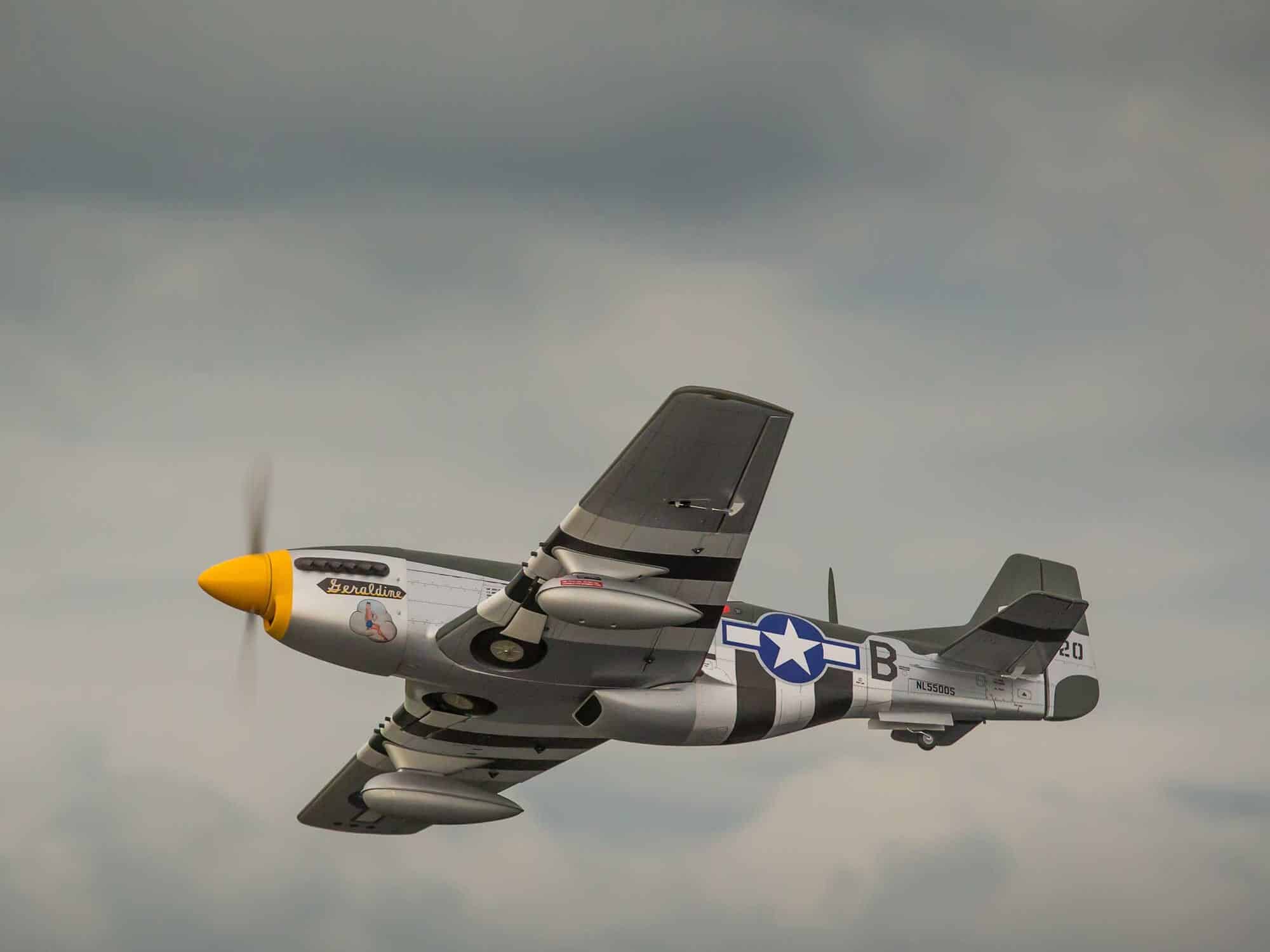 Make it powerful and make it able to fly far. These simple requirements sparked North American Aviation to create a phenomenal weapon called the P-51. Beyond its muscle, gas storage and gun slinging capabilities, pilots loved to fly it. Better known as the Mustang, it became America’s favorite fighter airplane, possibly of all time. The Hangar 9® P-51D Mustang 20cc ARF brings valiant tales of this warbird to life in a convenient 1/6th-scale model with unrivaled authenticity.