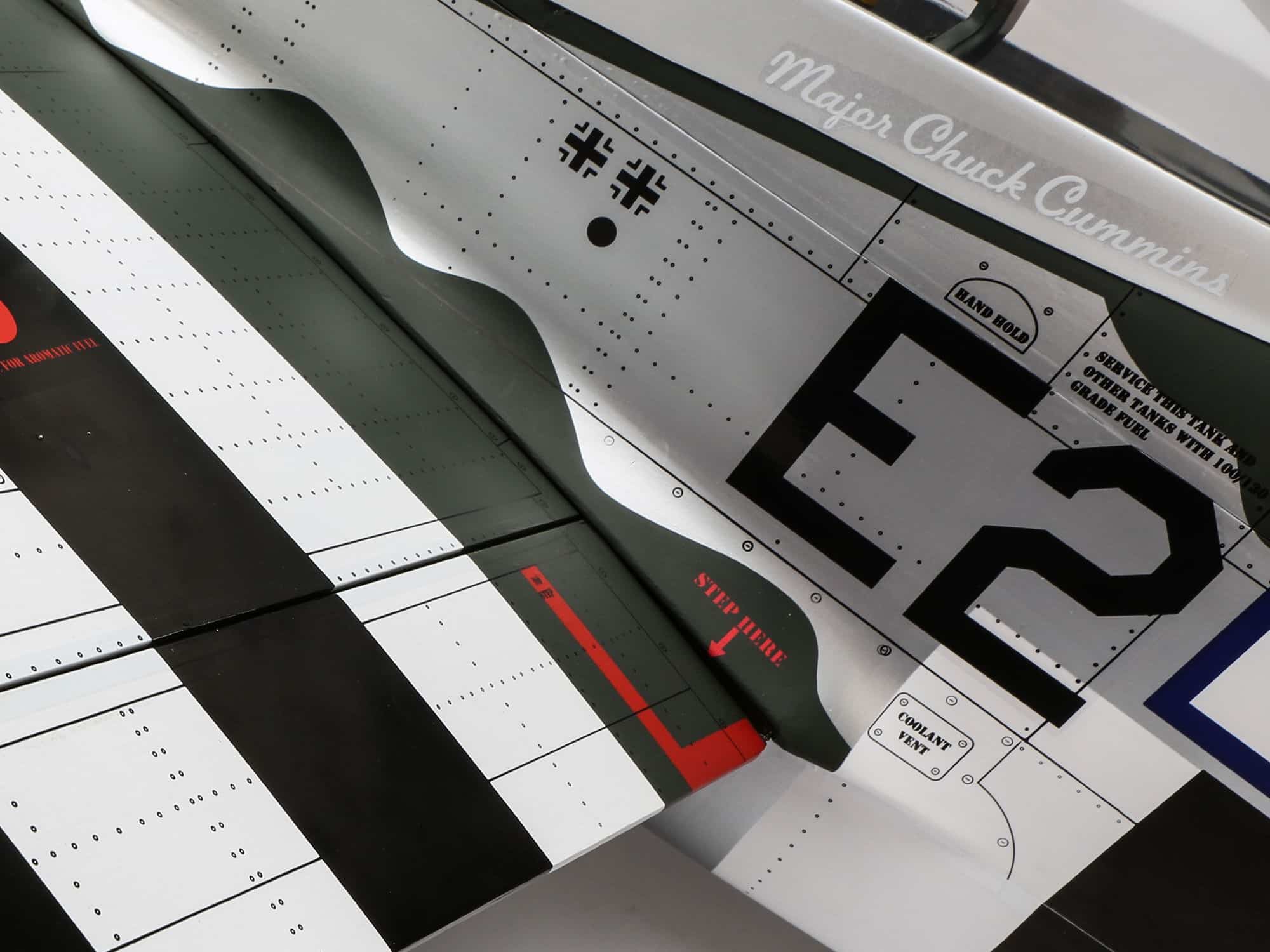 Laser-cut, lightweight balsa and plywood construction is utilized to bring the P-51D Mustang 20cc to life as a durable scale model that’s expertly built to exacting standards.