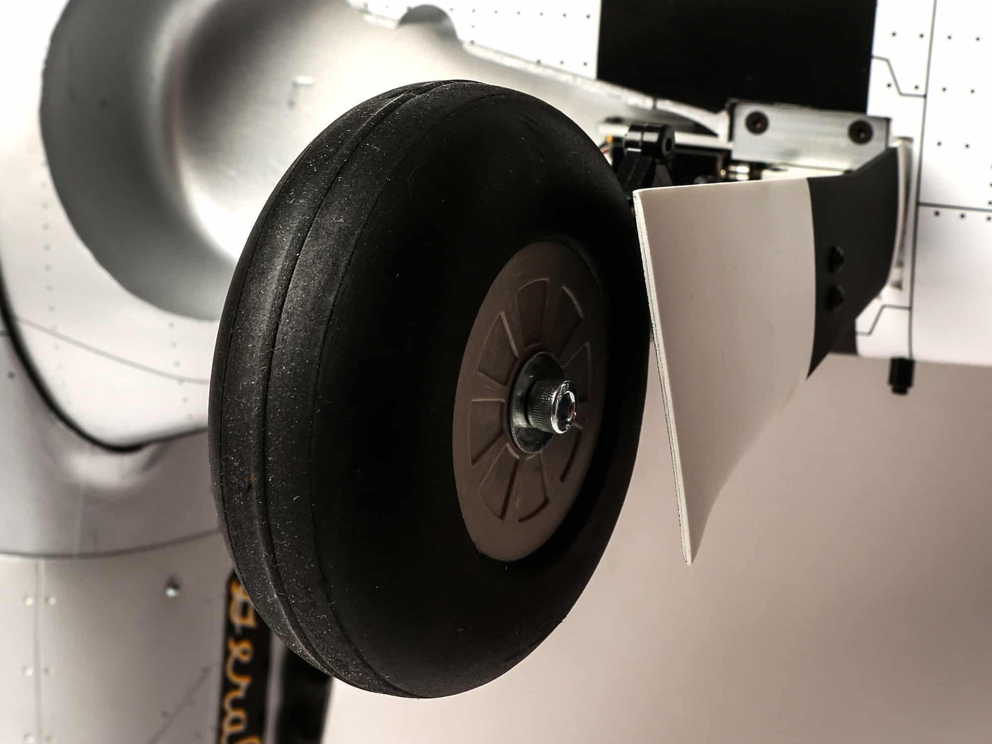 Rugged fixed landing gear with 4-inch wheels and realistic shock-absorbing struts (included)