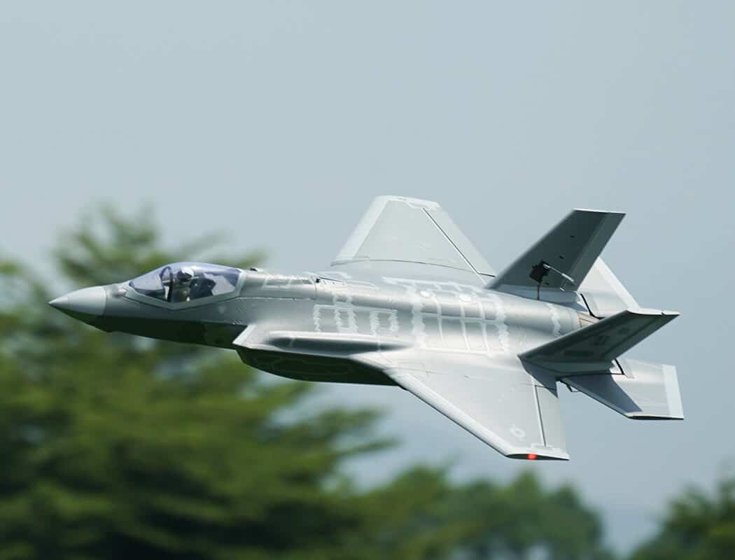 The F-35 Lightning is also available with CNC-machined aluminium landing gears with electronic retracts for durability and scale fidelity.