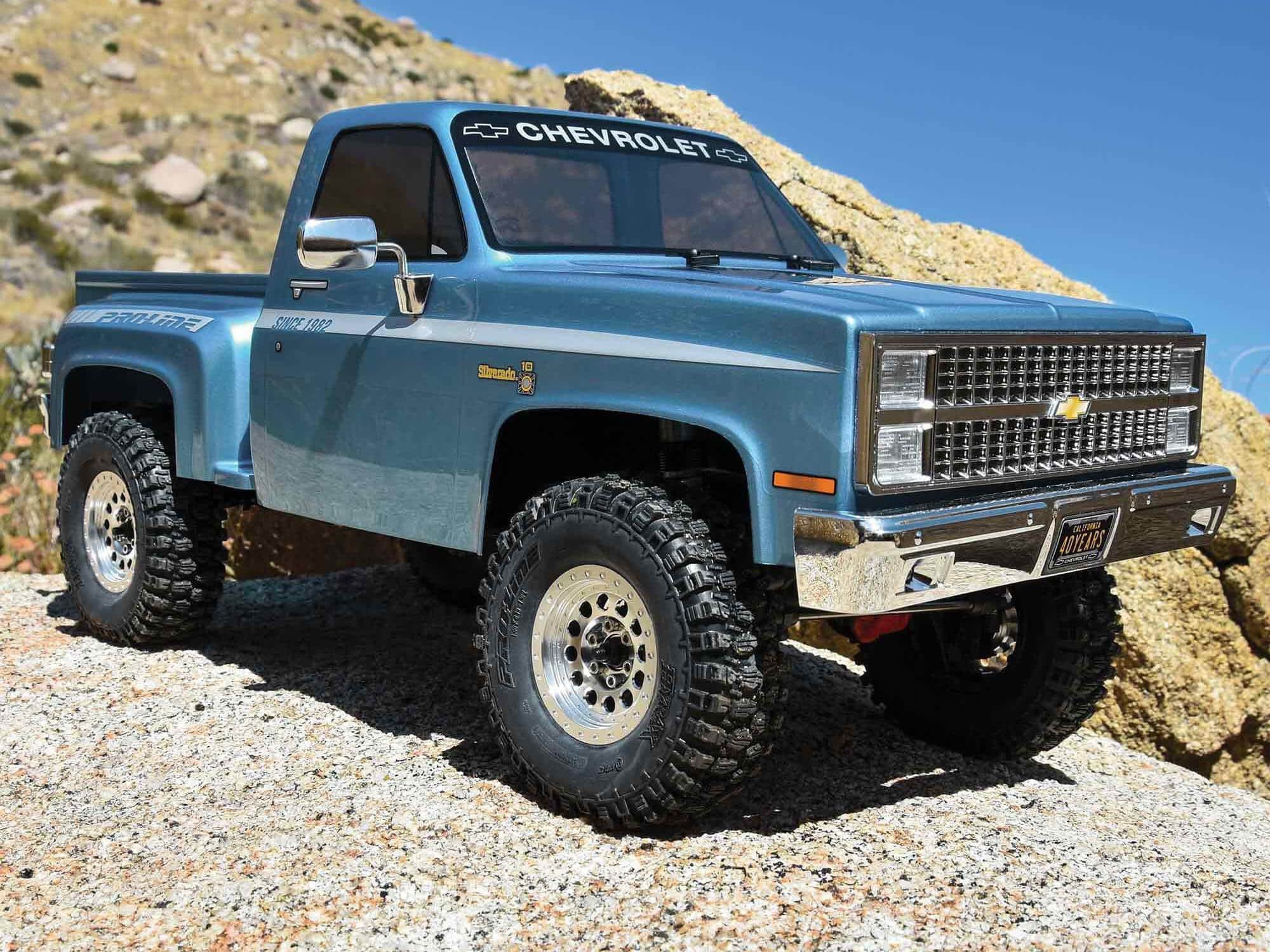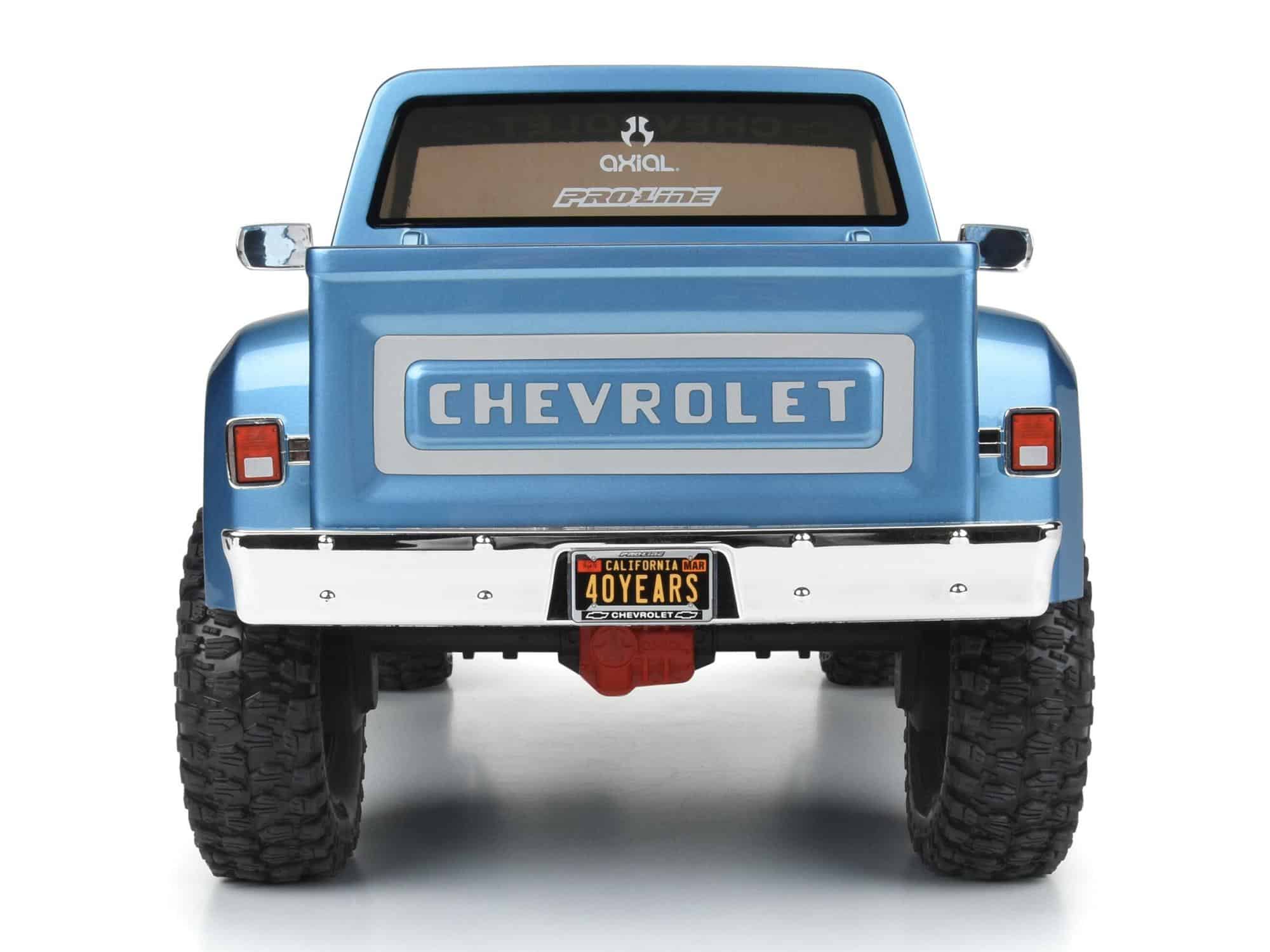 The Axial® team has admired the quality and performance of Pro-Line® brand products ever since we began making RC rigs more than 15 years ago. Now we’re excited to help celebrate Pro-Line Racing’s own 40th anniversary with our Limited Edition 40th Anniversary SCX10â„¢ III Pro-Line 1982 Chevy K10! Trail-ready right out of the box, this highly collectible, ready-to-run 4X4 crawler comes with many of your favorite Pro-Line upgrades — including Big Bore Scaler shocks, Rock Shooter aluminium/composite wheels, and Hyrax G8 Class 1 tyres. It’s topped off with an exclusive, factory-painted Pro-Line 1982 Chevy K10 body that’s tricked out with such scale details as a moulded grille, front and rear bumpers, brake lights, and two-piece side mirrors. Each Limited Edition chassis has a unique production number laser-etched into the motor plate. An essential item for fans and collectors, the Limited Edition SCX10 III Pro-Line 1982 Chevy K10 RTR makes a striking addition to your display shelf. It also comes equipped with proven Axial SCX10 III engineering for successfully taking on the most taxing trails. The stiff SCX10 III steel C-channel chassis reduces frame flexing and increases suspension movement precision. The single-speed transmission has full ball bearings and all-metal internal gears for strength and durability. To complete the ready-to-run package, the Axial team includes a perfectly matched brushed power system and Spektrumâ„¢ SLT3 radio. Just add your choice of battery and charger. Only 1,982 of these Limited Edition crawlers will be produced, so Axial and Pro-Line fans everywhere should act fast. Get yours before they’re gone!