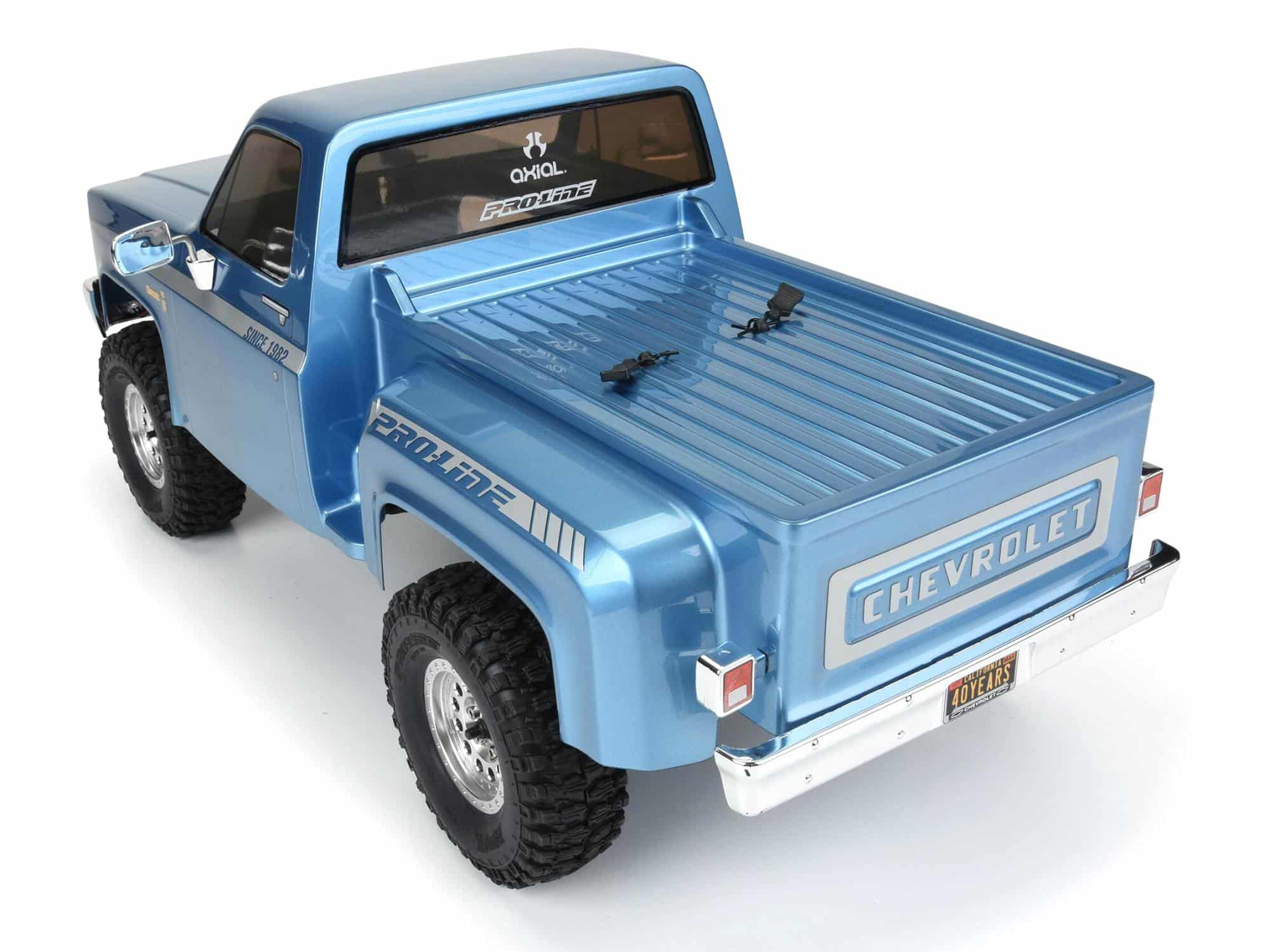- Pro-Line 1982 Chevy K10 body has a moulded grille, front and rear bumpers, brake lights, and 2-piece side-mirrors