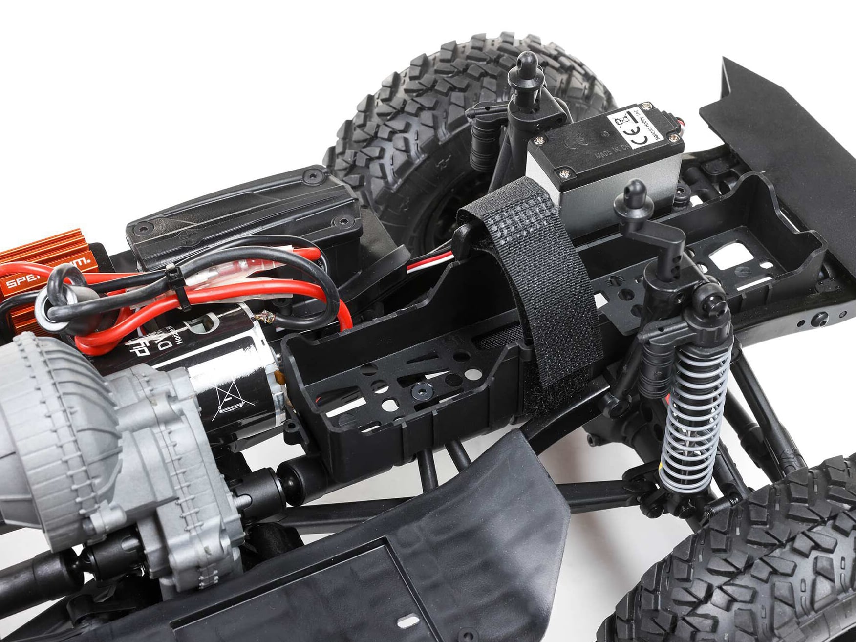 Just as a full-size truck has its steering box located on the frame, Axial places the servo mounting location on the chassis. The adjustable servo mounting system allows a wide range of servos to be used.