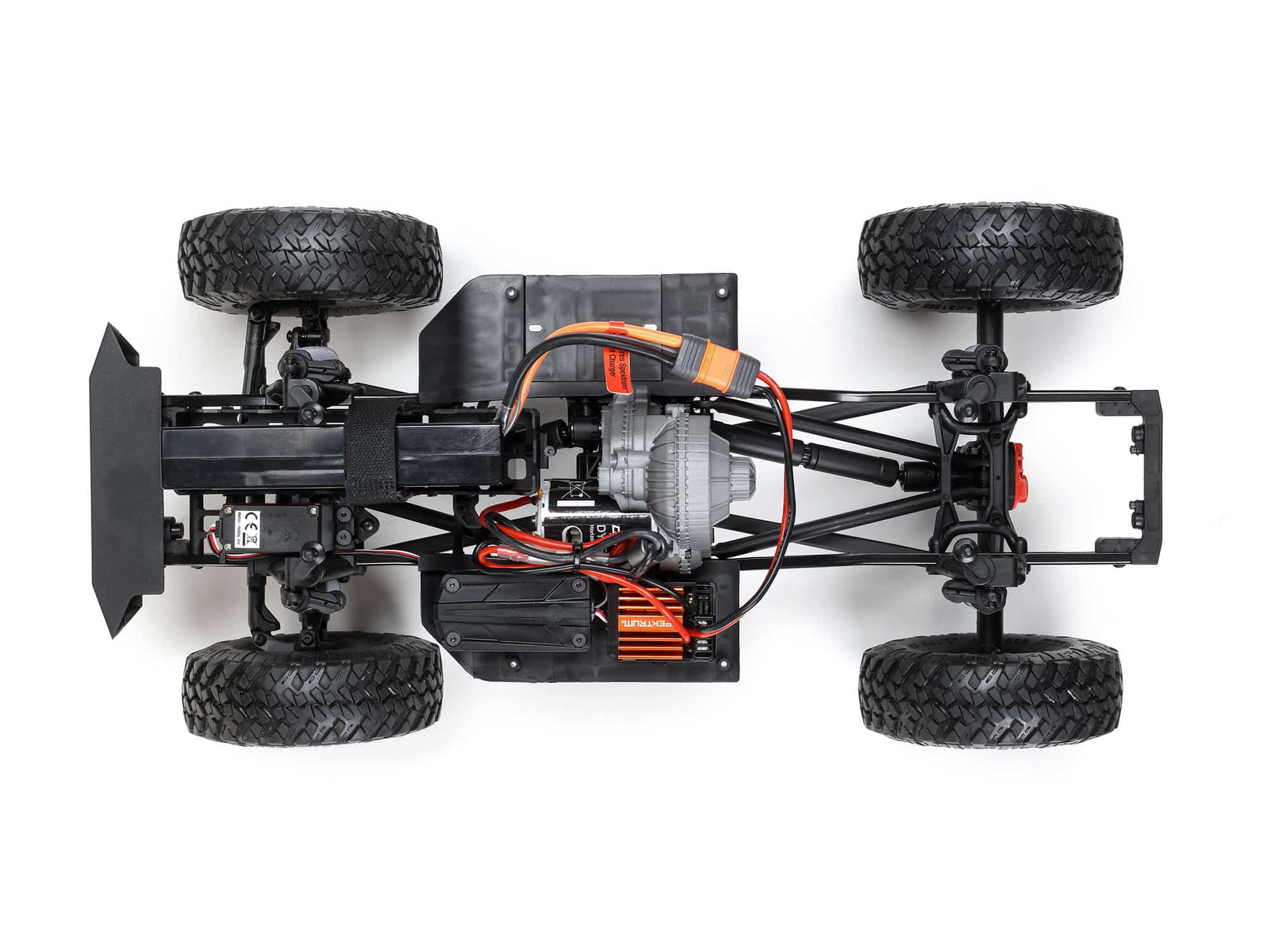 The realistic, high-strength SCX10™Â II C-channel chassis is made of durable steel with cross braces for reinforcement and rigidity. The contoured skid plate significantly reduces hang-ups, and the simplified design makes maintenance quick and easy. There’s also an adjustable body mount, adjustable bumper mounts with swaybar mounting points, and mounting points for an optional 2-speed transmission and servo winch.