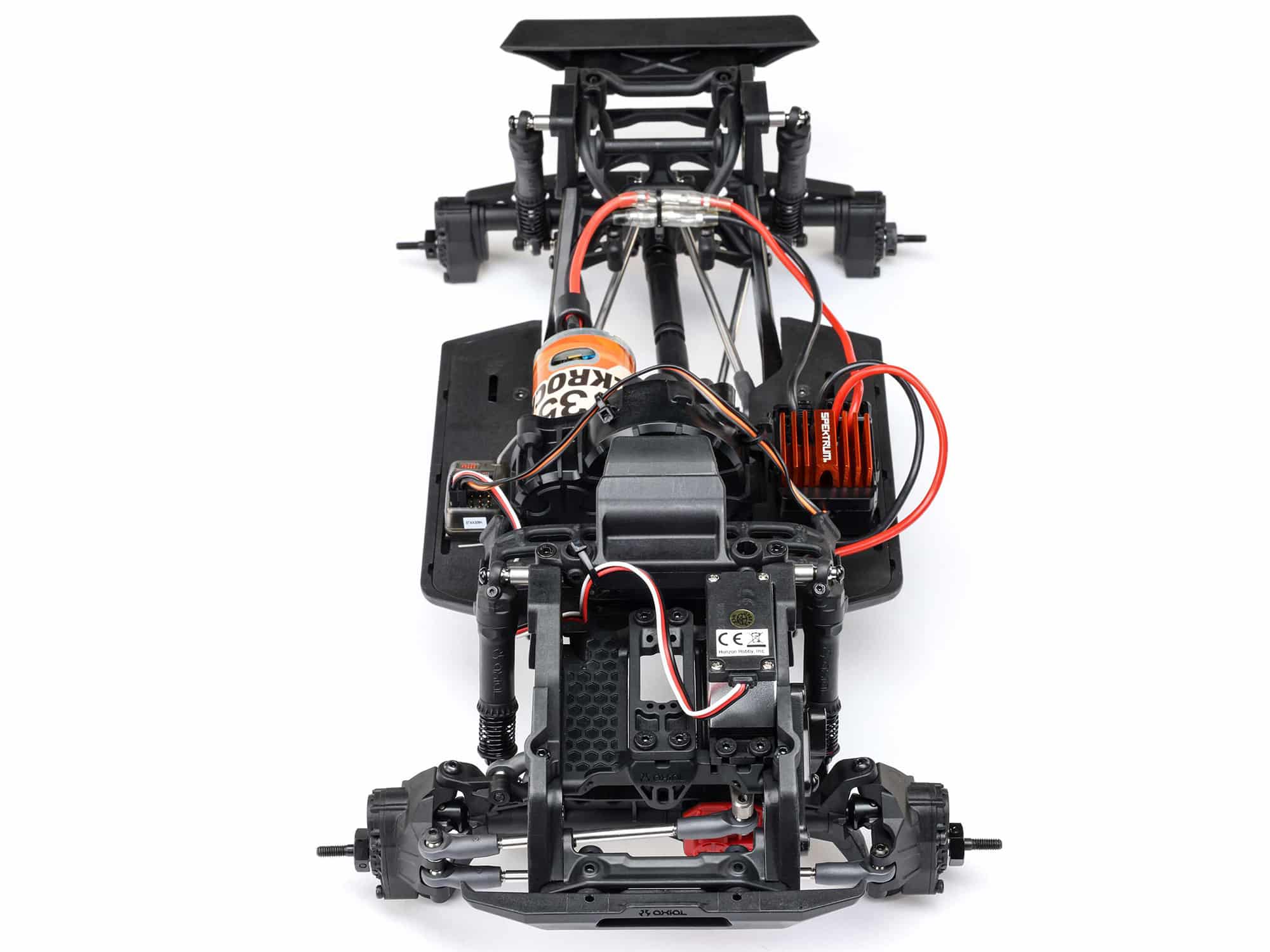 The Coyote’s factory-installed brushed power system features a 35T Axial 540 motor and waterproof Spektrum 40A ESC. A metal geared Spektrum S664 servo is included for strong, dependable steering.