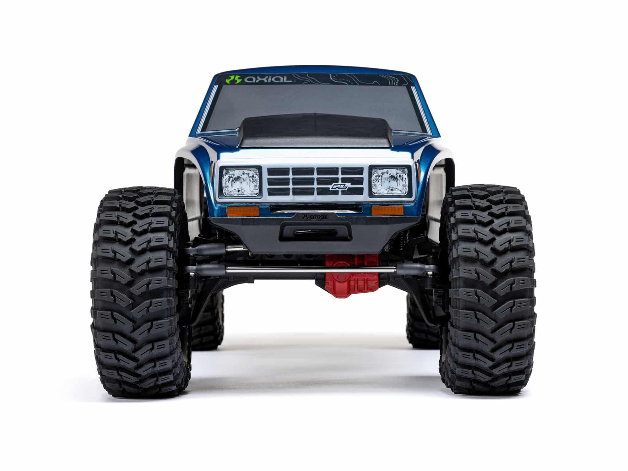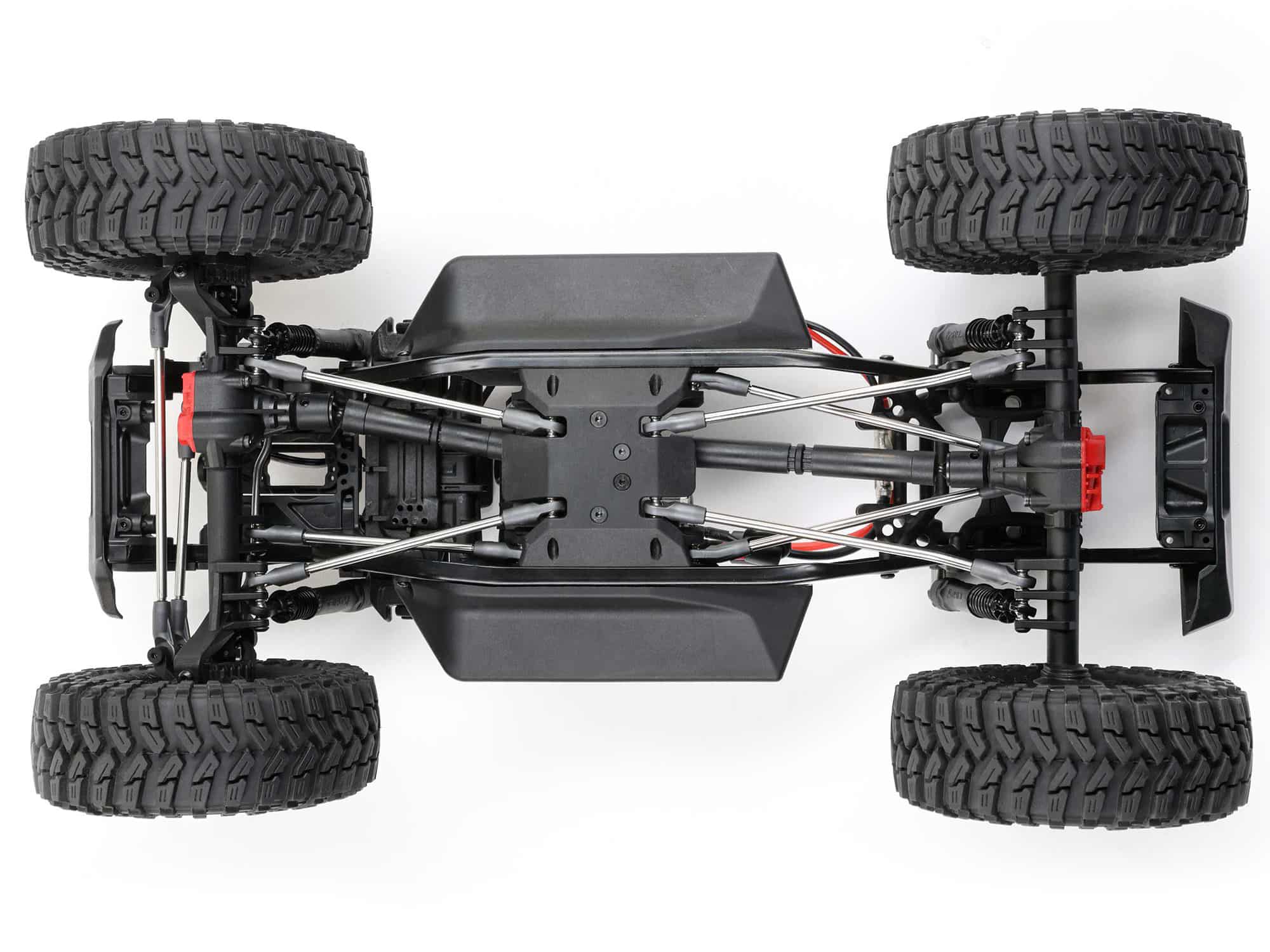 Axial also incorporates a clipless mounting system for the Pro-Line Coyote body, enhancing the rig’s looks by eliminating visible body clips. The body is hinged at the rear and removes completely for effortless chassis access. There are no clips to fuss with and lose. For the best performance on the trails, the body is pinched in the front, dovetailed, and bobbed in the rear, and only as wide as necessary. It slips through narrow obstacles and allows ample tyre clearance and suspension articulation.