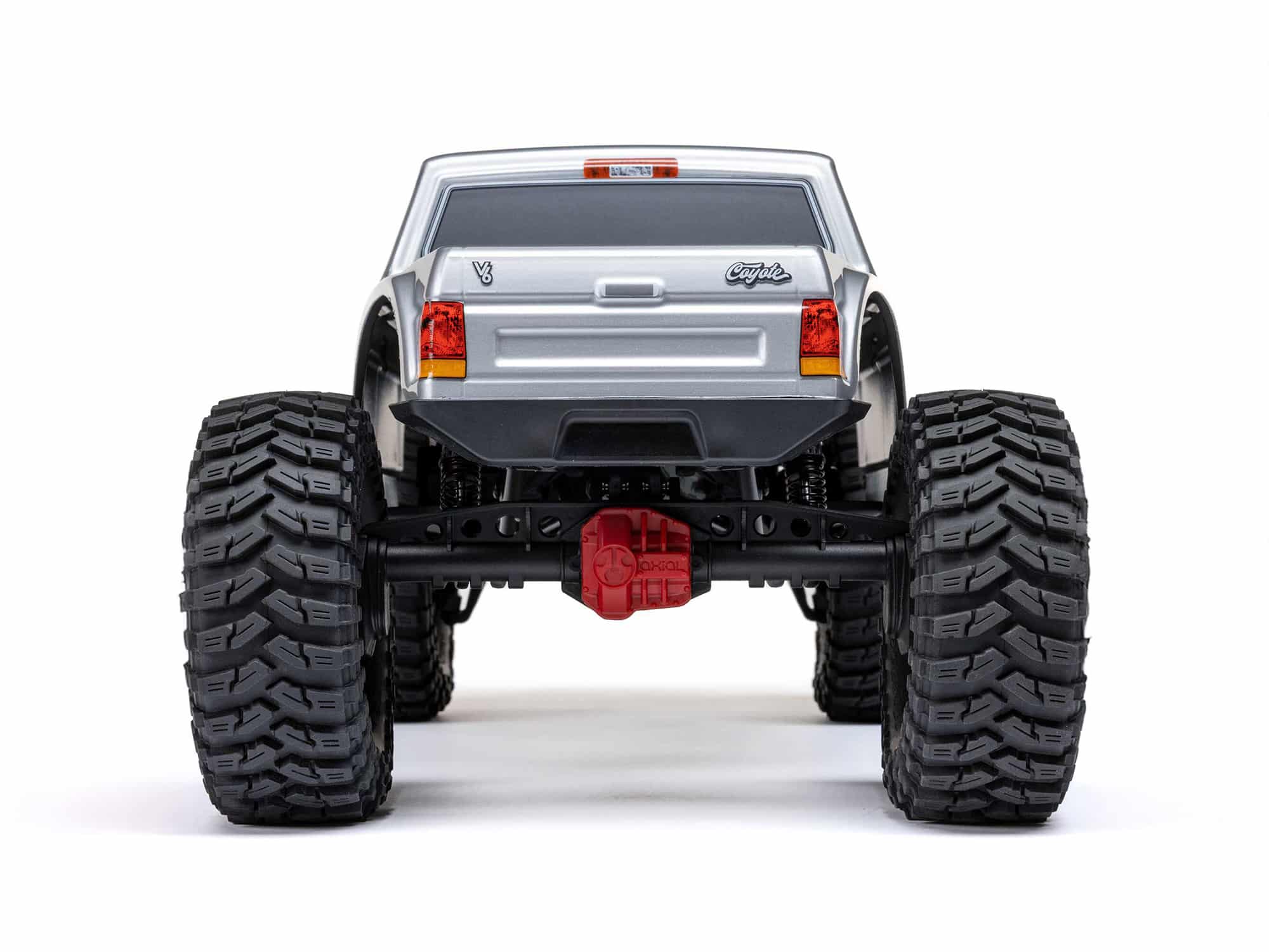 Axial also incorporates a clipless mounting system for the Pro-Line Coyote body, enhancing the rig’s looks by eliminating visible body clips. The body is hinged at the rear and removes completely for effortless chassis access. There are no clips to fuss with and lose. For the best performance on the trails, the body is pinched in the front, dovetailed, and bobbed in the rear, and only as wide as necessary. It slips through narrow obstacles and allows ample tyre clearance and suspension articulation.