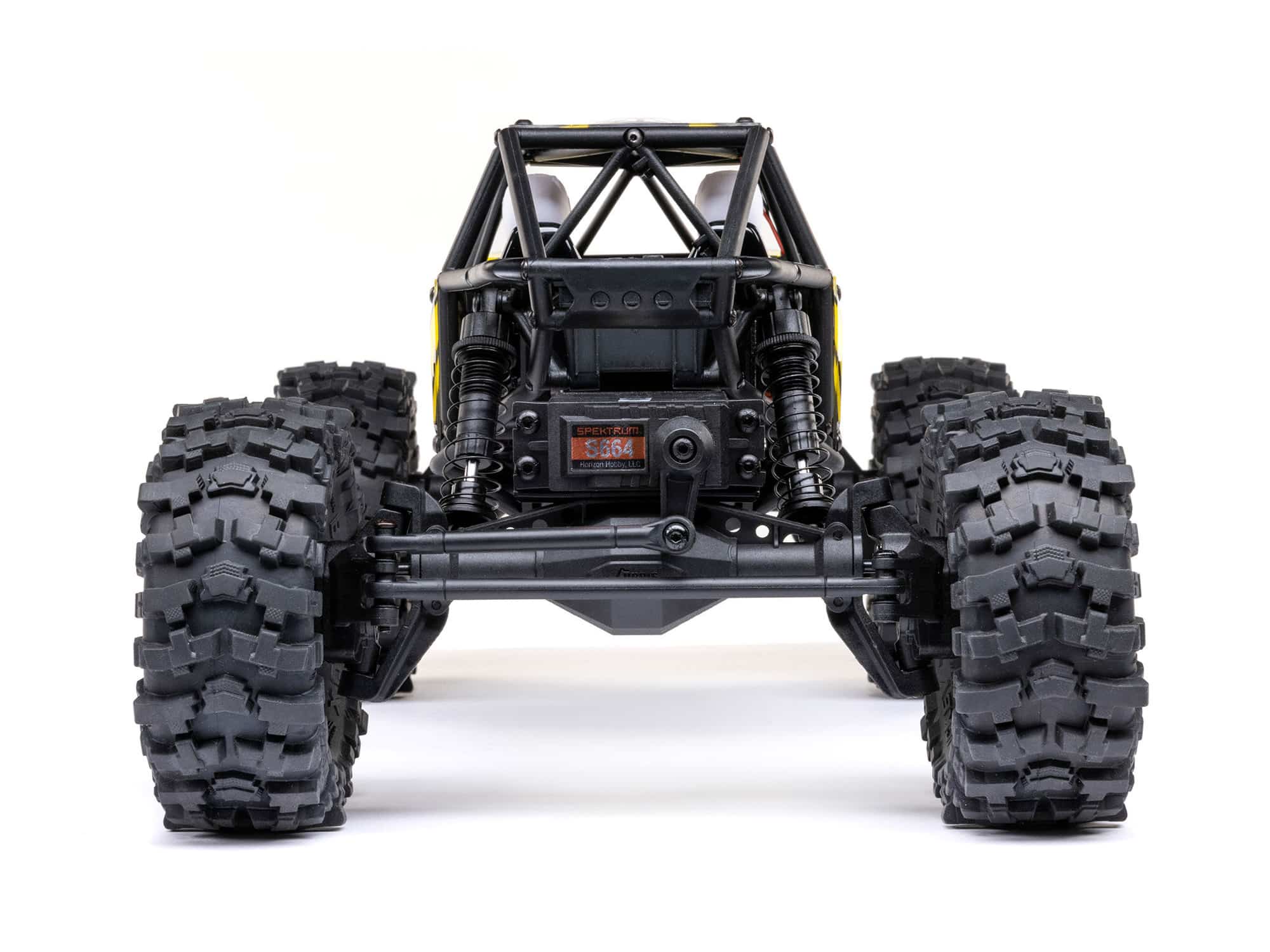 Fully assembled and finished, the UTB18 Capra 4WS comes with a factory-installed motor, Spektrum 5-channel SR515 dual protocol receiver, Spektrum Firma 25A brushed ESC, and two Spektrum S664 25T steering servos. Everything you need to start crawling is included in the box. Just charge the provided LiPo battery with the USB-C charger and hit the trails!