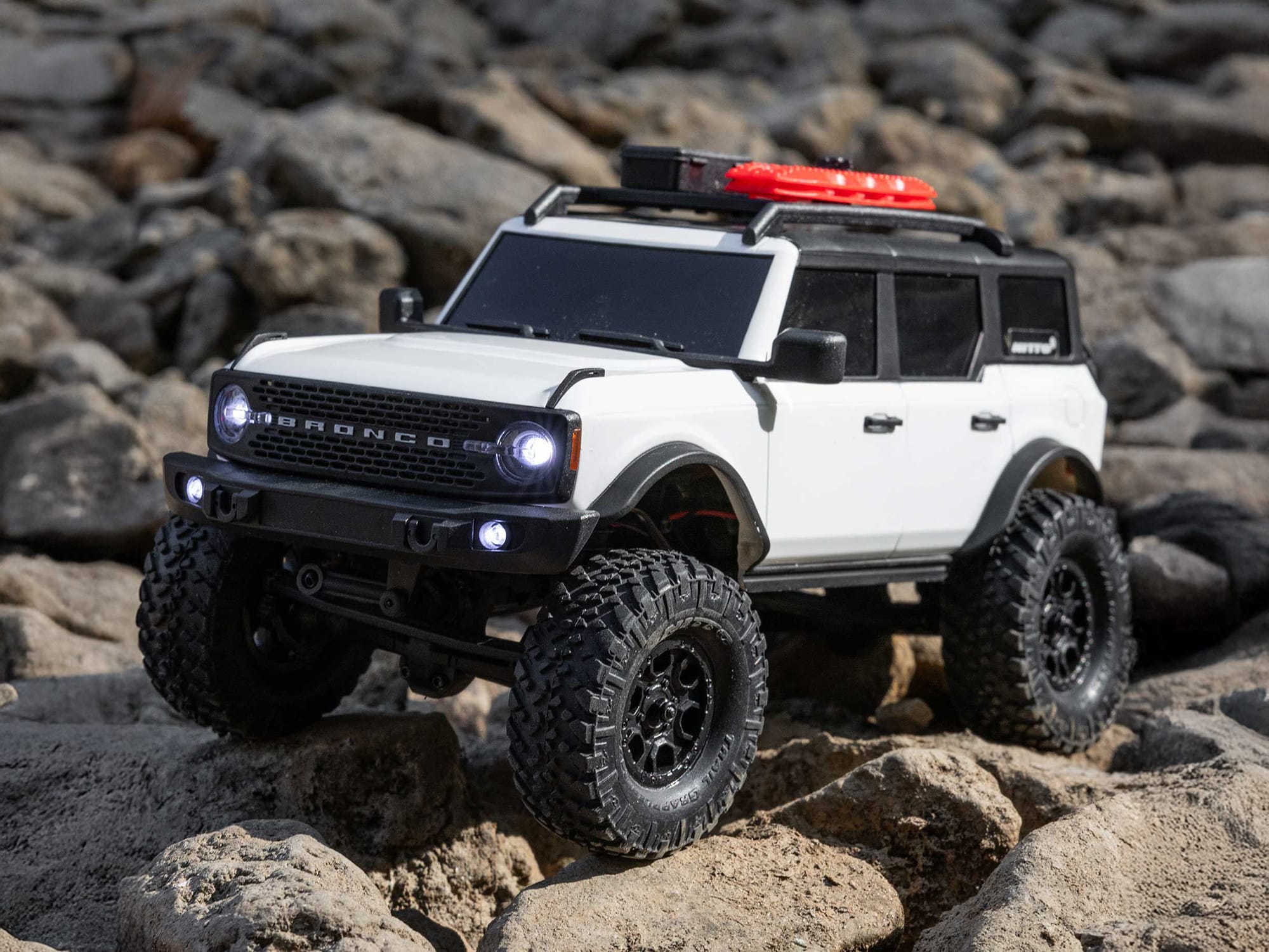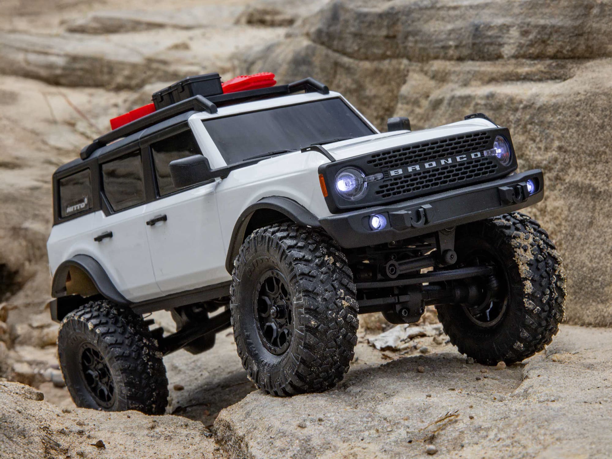Complementing the exceptional detail of the scale hard body, Axial has outfitted the SCX24 Ford Bronco with officially licensed Nitto Trail Grappler M/T tyres. They offer a fantastic blend of off-road performance while retaining excellent composure for on-road use.