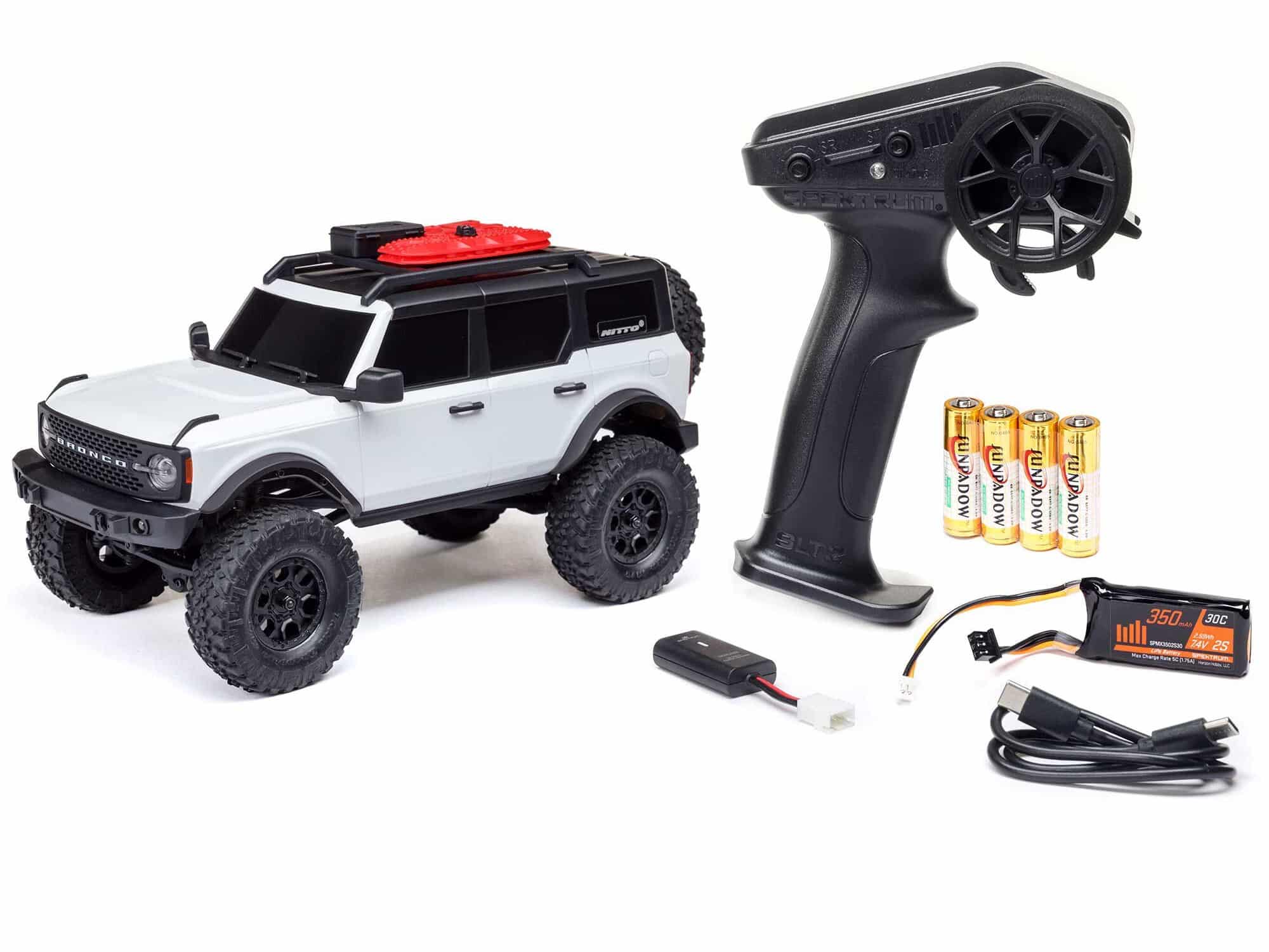 Ready for an adventure? You can start yours almost immediately. The Axial SCX24 Ford Bronco RTR comes with everything you need – a Spektrum SLT2â„¢ 2.4GHz radio, Spektrum 350mAh 2S 30C 7.4V LiPo battery, handy Spektrum USB LiPo charger, and four AA batteries for the transmitter. Just pick your favorite of the three new body colour options and choose your trail. The SCX24 Bronco is a must for Ford enthusiasts, and an essential addition to every Axial fan’s fleet!