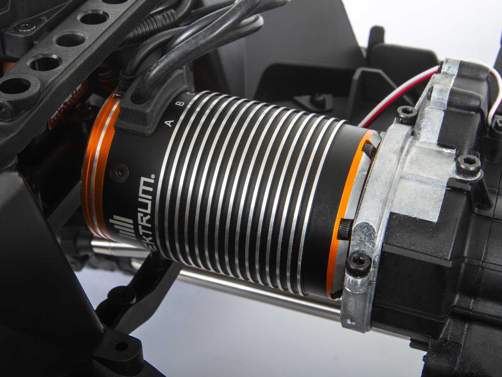 A replica V8 engine covers and protects the included Spektrumâ„¢ Firmaâ„¢ Smart ESC while adding to the model’s realistic appearance.