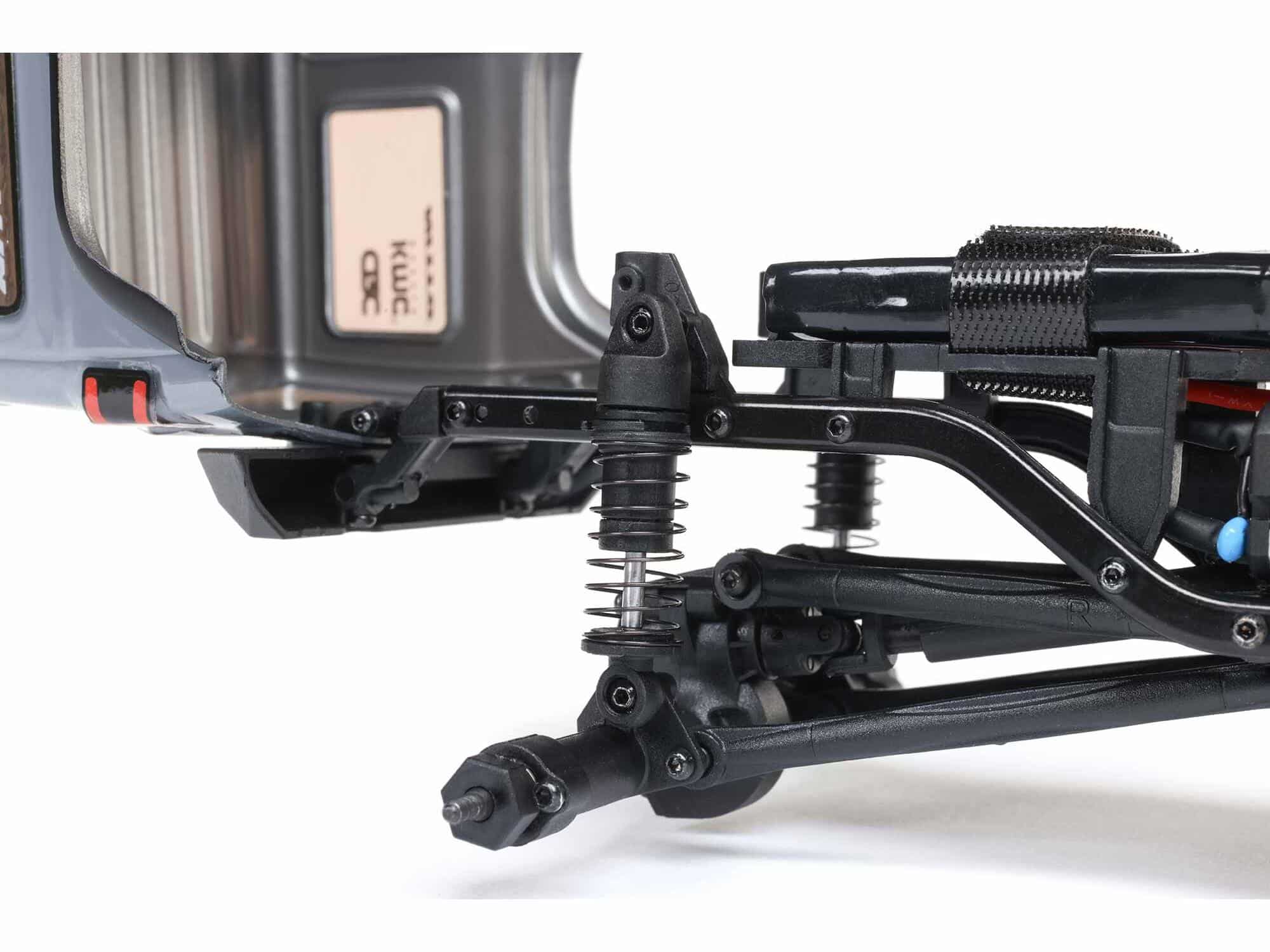 And it still has all the performance advantages of the proven Axial SCX24 platform. Full-time 4WD and a 3-link front/4-link rear suspension let you muscle over big challenges. Worm gears on the axles increase the ground clearance. Realistic steel frame rails on the C-channel chassis stand up to hard knocks.