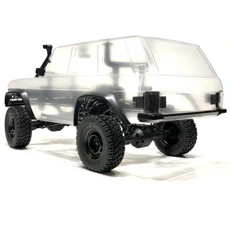 The classic 4-Door Range Rover body is further enhanced with additional injection moulded Scale Details. Wing Mirrors, Windscreen Wipers, Grille, front and rear Bumpers, and front and rear LED Ready Light Buckets all combine to take this Lexan Shell to another level of realism. Add to that the new Custom elements of Wheel Arches and a Snorkel and you have a truly capable off road 4×4 with real purpose and intent. Forget posing in Chelsea and on the School Run, this was meant to hit the trails and Rocks. As with all our shells, the realistic proportions and detailing offer ‘Hard Body’ looks, with the advantage of Lexan weight saving and performance.