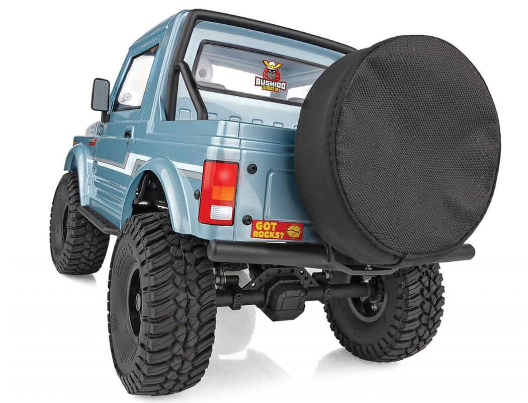 Just like the standard Bushido, the Bushido+ is a single-piece prepainted polycarbonate body with clear windows, injection-molded mirrors, grill, wipers, snorkel, bumpers, and rear bed cage. In addition to those great details, the Bushido+ comes equipped with a detailed polycarbonate interior with molded head, injection-molded light buckets, LEDs for the headlights and taillights, along with a polycarbonate faux spare tire and cloth tire cover. It’s everything the standard Bushido is, PLUS more!