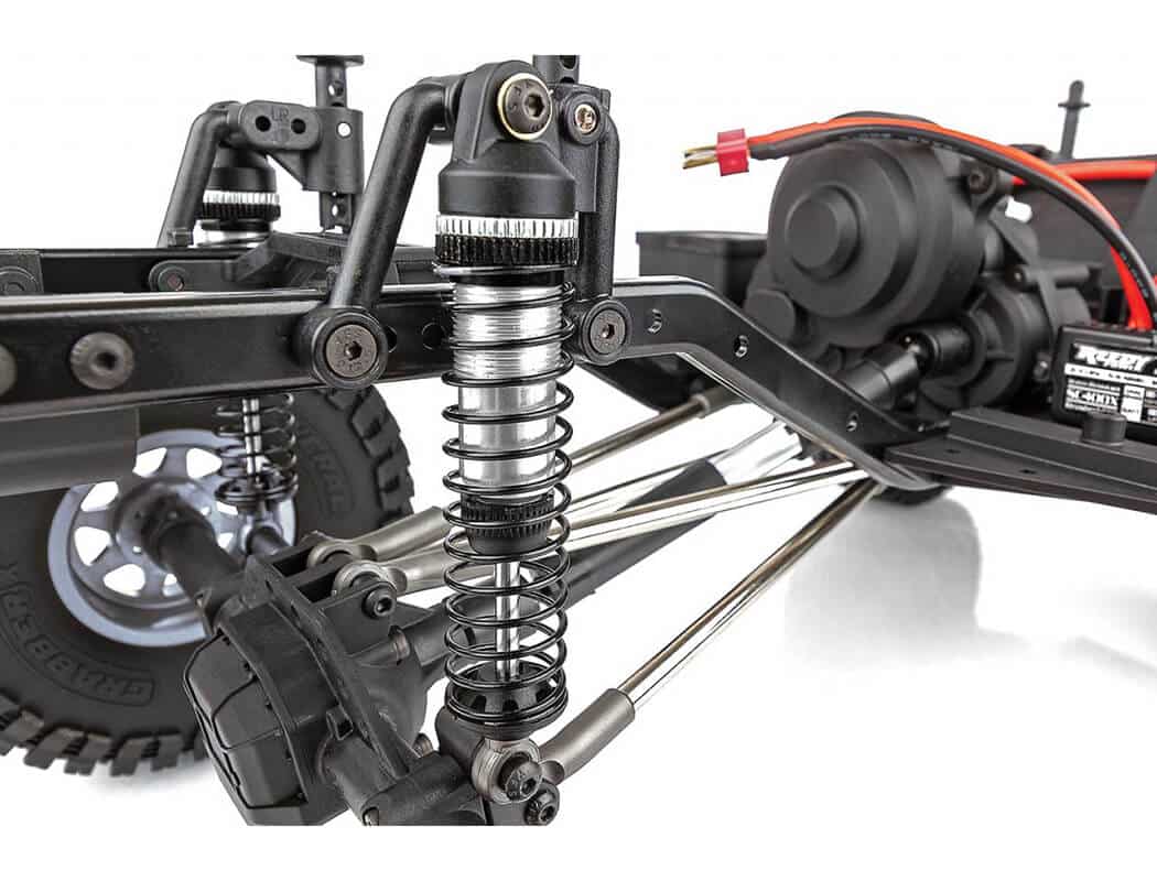 Threaded Aluminium Shock Bodies: Threaded aluminum and fluid-filled, these shocks keep the vehicle stable on the trail and retain oil even in the roughest terrain.