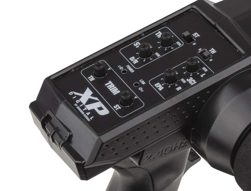 RADIO and SERVO: The XP130, 2.4GHz, 3-channel radio, and receiver, together with a 1320MG (metal gear) water-resistant servo pushing out 173 oz-in (12.5kg-cm) of torque at 6V is the perfect setup for keeping the Enduro under control on the trail.