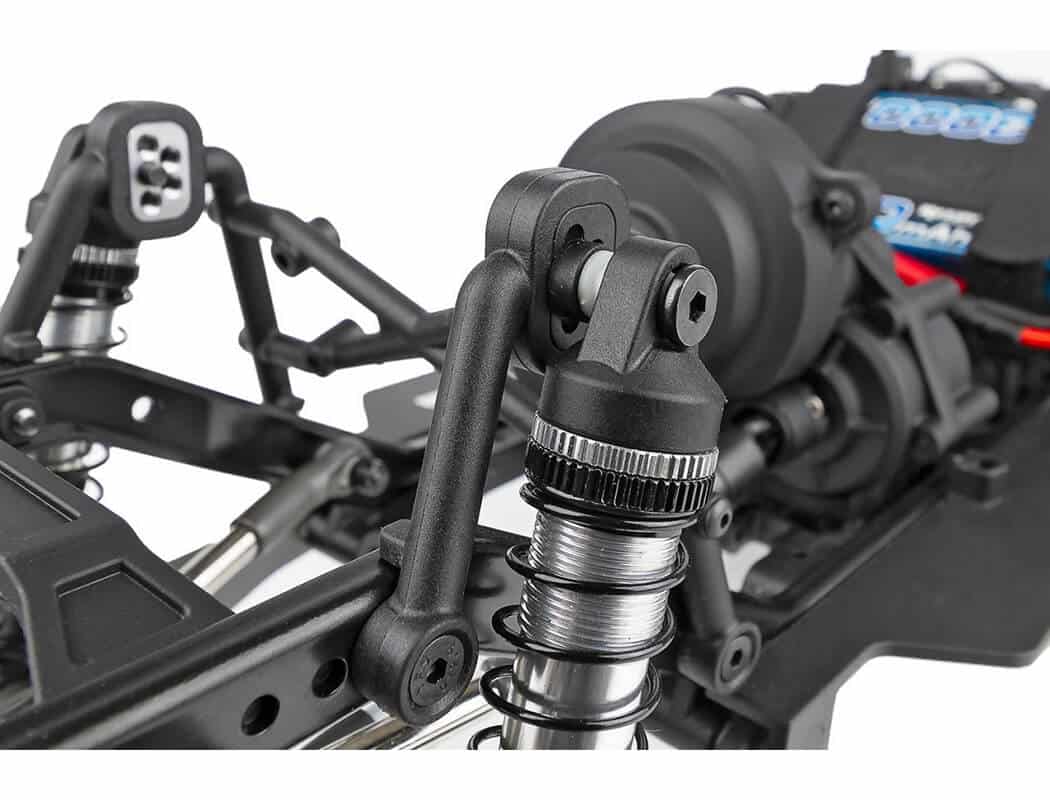 Trailing Arm Rear Suspension: At the heart of the Gatekeeper Suspension are the rear trailing arms. This design moves the shocks forward, thus improving weight bias. Because the shock mounting points are farther forward on the lower links and chassis, this allows for a larger window for shock tuning and an optimized anti-roll bar mounting position.