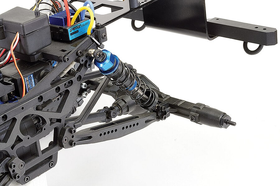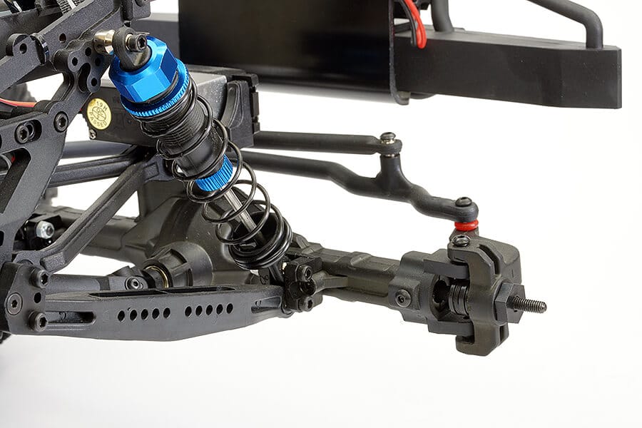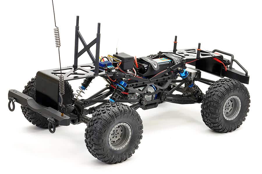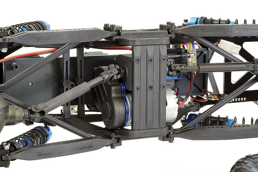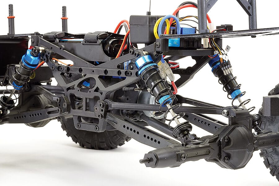 A 60T brushed motor provides the torque, while the same metal output gears, locked axles and multi-link suspension produce the drive you need to pretty much scale over most obstacles.
