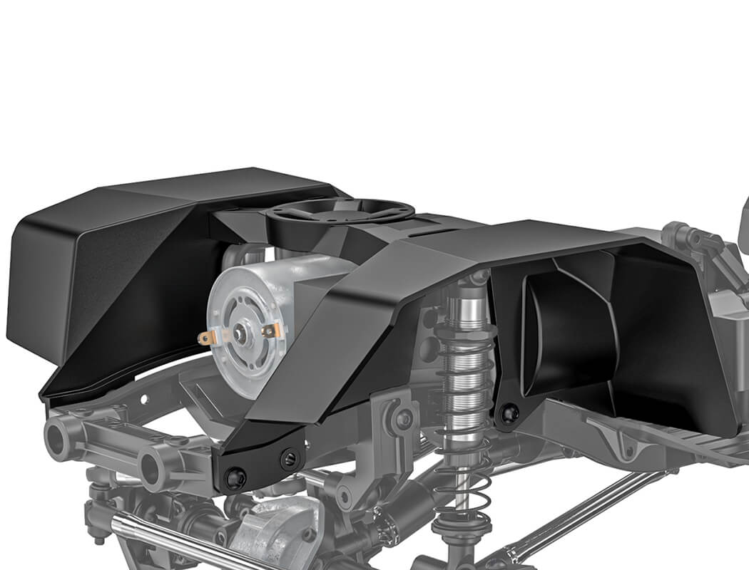 The Trail Finder 2 has a multi-purpose, molded fuel cell that serves as an electronics storage box and provides additional RC realism by storing away any protruding wires.