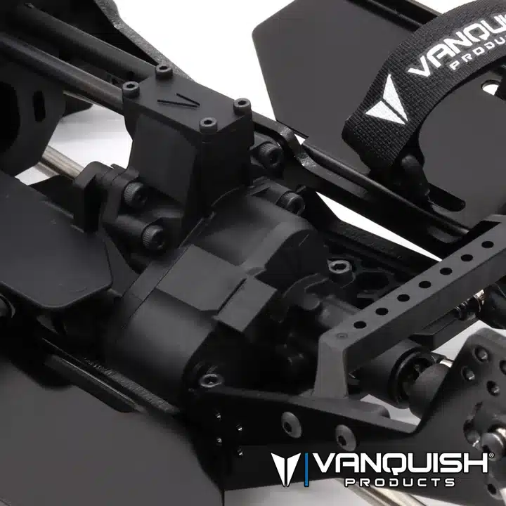The Vanquish Products VRD chassis is equipped with molded chassis components that provide a tunable platform to adapt to the most demanding terrain. Multiple shock and body mounting positions combined with minimalistic front/rear interchangeable bumpers make body mounting and fitment straight forward. Stamped aluminum rock sliders provide a flat location for electronics and/or battery mounting and are able to support and protect your body.